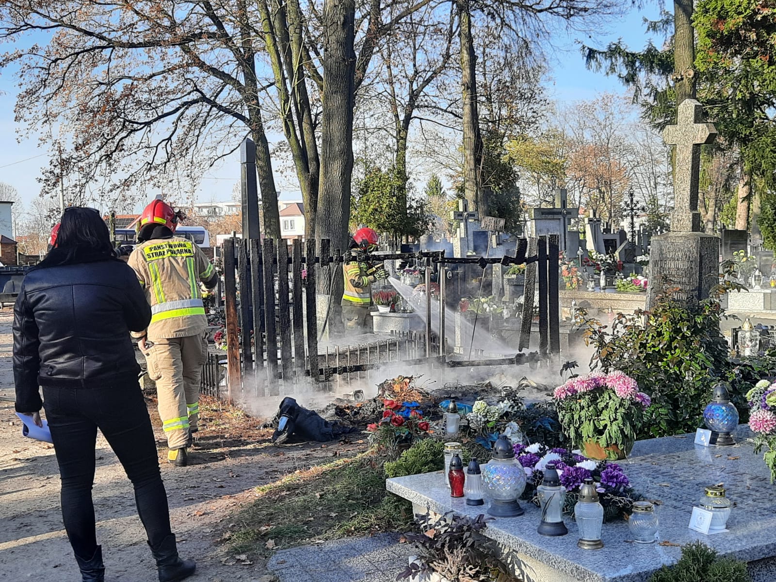 Kłęby dymu i ogień - taki widok spotkał dziś odwiedzających groby na tzw. starym cmentarzu w Białej Podlaskiej.