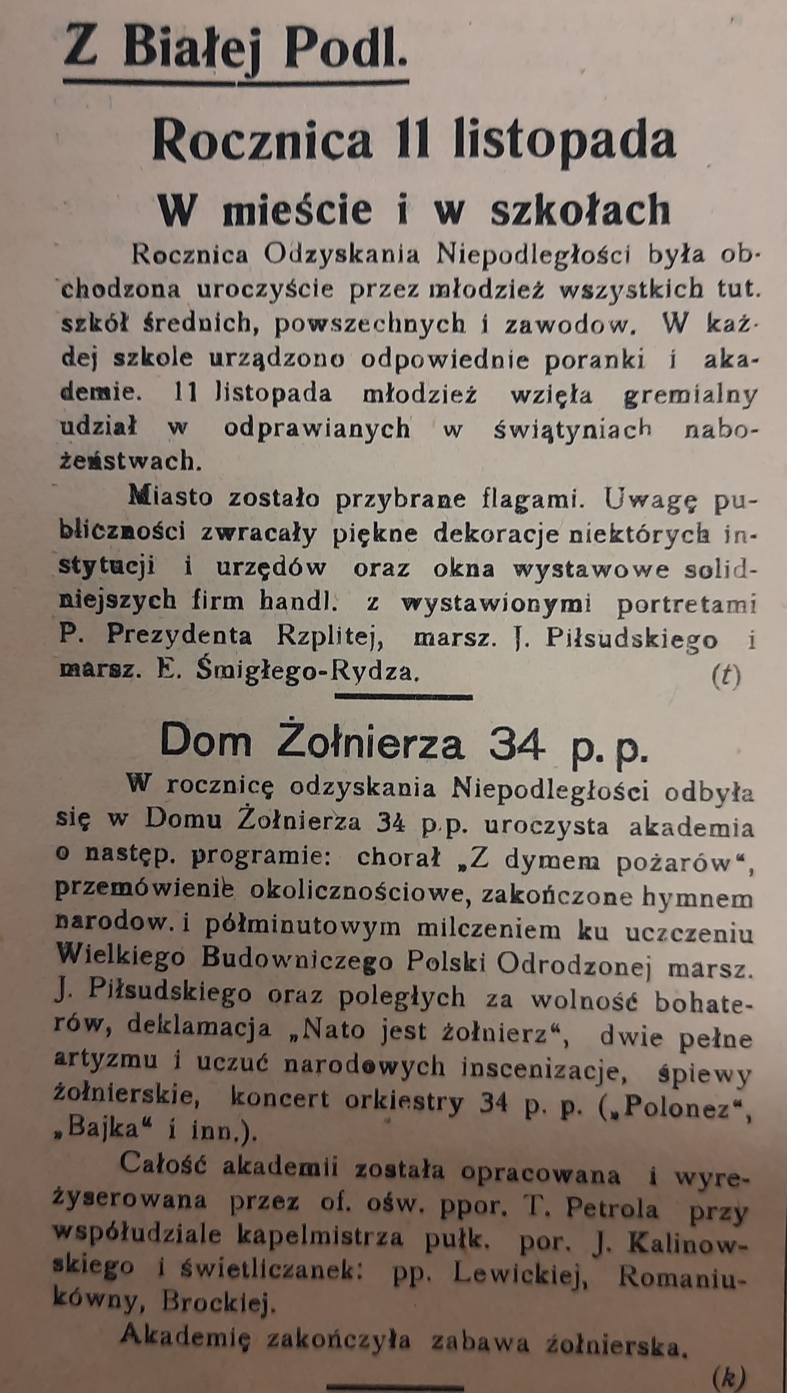 Głos Społeczny, lokalne pismo bialskie, rok po roku opisywał te uroczystości, utrwalając nie tylko ich przebieg, lecz także emocje mieszkańców. W jego relacjach widać, jak z każdym rokiem święto stawało się coraz bardziej uroczyste i coraz silniej splecione z pamięcią o Józefie Piłsudskim – postaci, która dla wielu ówczesnych była żywym symbolem wolności.