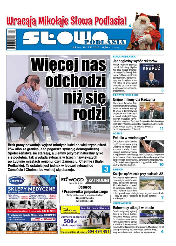 - Więcej nas odchodzi niż się rodzi. Brak pracy powoduje wyjazd młodych ludzi do większych ośrodków albo za granicę, a to pogarsza sytuację demograficzną. Społeczeństwa się starzeją, a ujemny przyrost naturalny tylko się pogłębia. Tak wygląda sytuacja w trzech największych po Lublinie miastach regionu, czyli Zamościu, Chełmie i Białej Podlaskiej. Ta ostatnia jest jednak w lepszej sytuacji od Zamościa i Chełma, bo wolniej się starzeje.