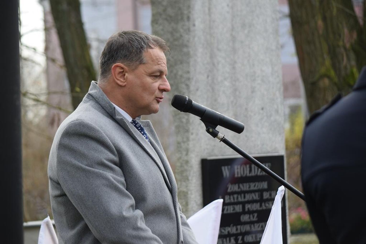 - 11 listopada to wielkie święto - dzień, w którym oddajemy hołd wszystkim, którzy poświęcili swoje życie w obronie ojczyzny. Miejsce znajdujące się po mojej lewej stronie, pomnik Batalionów Chłopskich, ma charakter szczególny. To formacja, o której w Polsce zbyt często się zapomina, a przecież odegrała bardzo ważną rolę w walce o wolność naszego kraju - wskazał starosta Mariusz Filipiuk.