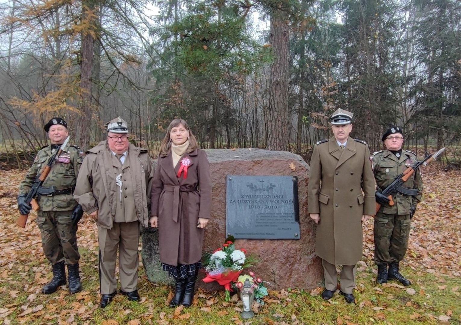 Uroczystości rozpoczęły się od złożenia kwiatów przy tablicy pamiątkowej, ufundowanej przez leśników Nadleśnictwa Biała Podlaska z okazji 100-lecia odzyskania niepodległości.