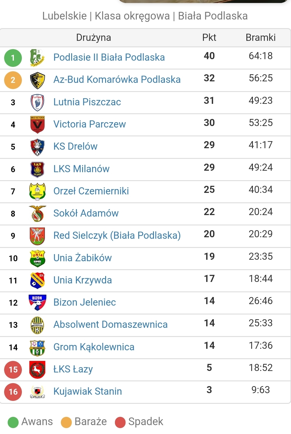 15.kolejka: Unia Krzywda - LKS Milanów 2:0 (Sebastian Bober 7’, Wiktor Hryciuk 50'), Orzeł Czemierniki - Absolwent Domaszewnica 3:0 (Wiktor Golec 8', Dominik Kula 24', Alan Kołtuniewicz 38'), Bizon Jeleniec - Lutnia Piszczac 1:3 (Filip Okuń 81'- Tomasz Tuttas x3 36', 54', 66'), ŁKS Łazy - Podlasie II Biała Podlaska 0:9 (Hubert Wasilewski 6', 58', Adrian Dobrodziej 24', 85', Bartosz Hanuszek 63', Dominik Kucharczyk 68', Jakub Stalewski 78', Wojciech Józwuk 80', Marcin Sawczuk 89'), Grom Kąkolewnica - KS Drelów 2:1 (Filip Stepulak 29', Paweł Muszyński 80' - Piotr Wojtczuk 2'), Kujawiak Stanin - Unia Żabików 2:5 (Sebastian Osiński 35', Kacper Gryczka 38' - Mateusz Pawelec 2', 90'+2, Maksymilian Sowa 25', Bartłomiej Błyskun 66', Damian Kurzacz 73'), LZS Sielczyk - Victoria Parczew 0:0, Sokół Adamów - Az-Bud Komarówka Podlaska 1:6 (Daniel Pioruński 36' - Dominik Derlukiewicz 25', Daniel Korol 49', Bartłomiej Tymoszuk x2 57', 64', Kacper Kania 60', Cezary Szymański 78’).
