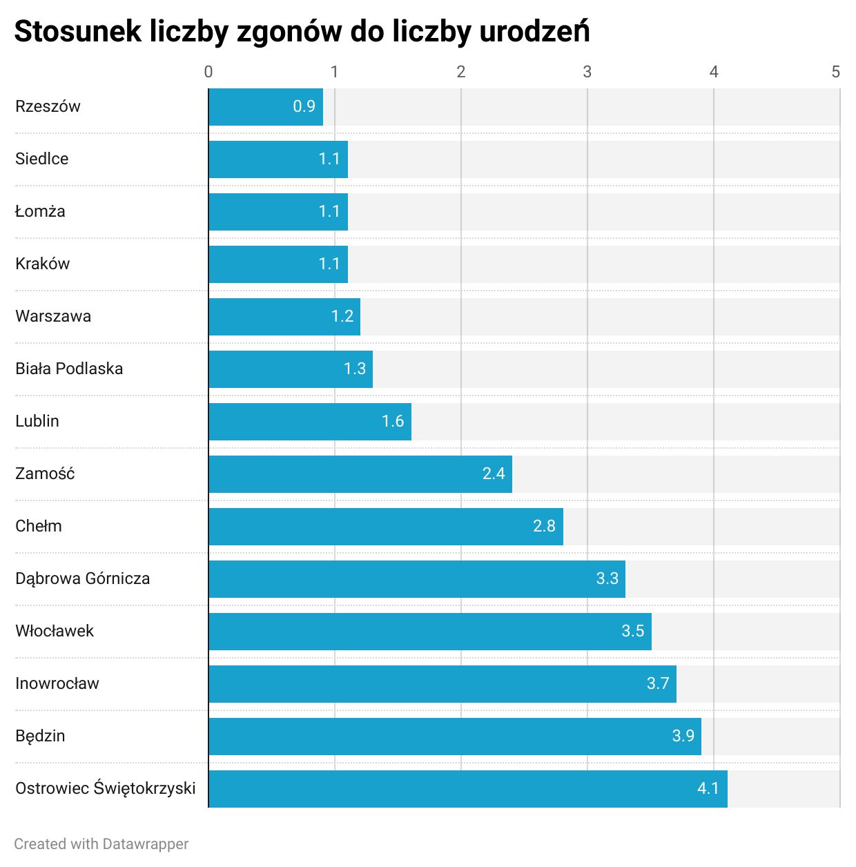 Jest tajemnicą poliszynela, że brak pracy powoduje wyjazd młodych ludzi do większych ośrodków albo za granicę, a to pogarsza sytuację demograficzną. Społeczeństwa się starzeją, a ujemny przyrost naturalny tylko się pogłębia. Jak wynika z raportu GUS „Ludność. Stan i struktura oraz ruch naturalny w przekroju terytorialnym”, w zeszłym roku indeks starości wyniósł w Polsce 141, co oznacza że na 100 dzieci w wieku 0-14 lat przypada 141 seniorów, czyli osób w wieku powyżej 65 lat. W woj. lubelskim wskaźnik wyniósł 153. Najmłodziej z trzech omawianych tu miast wyglądała Biała Podlaska ze wskaźnikiem 149, a najbardziej postarzał się Chełm ze wskaźnikiem 220.