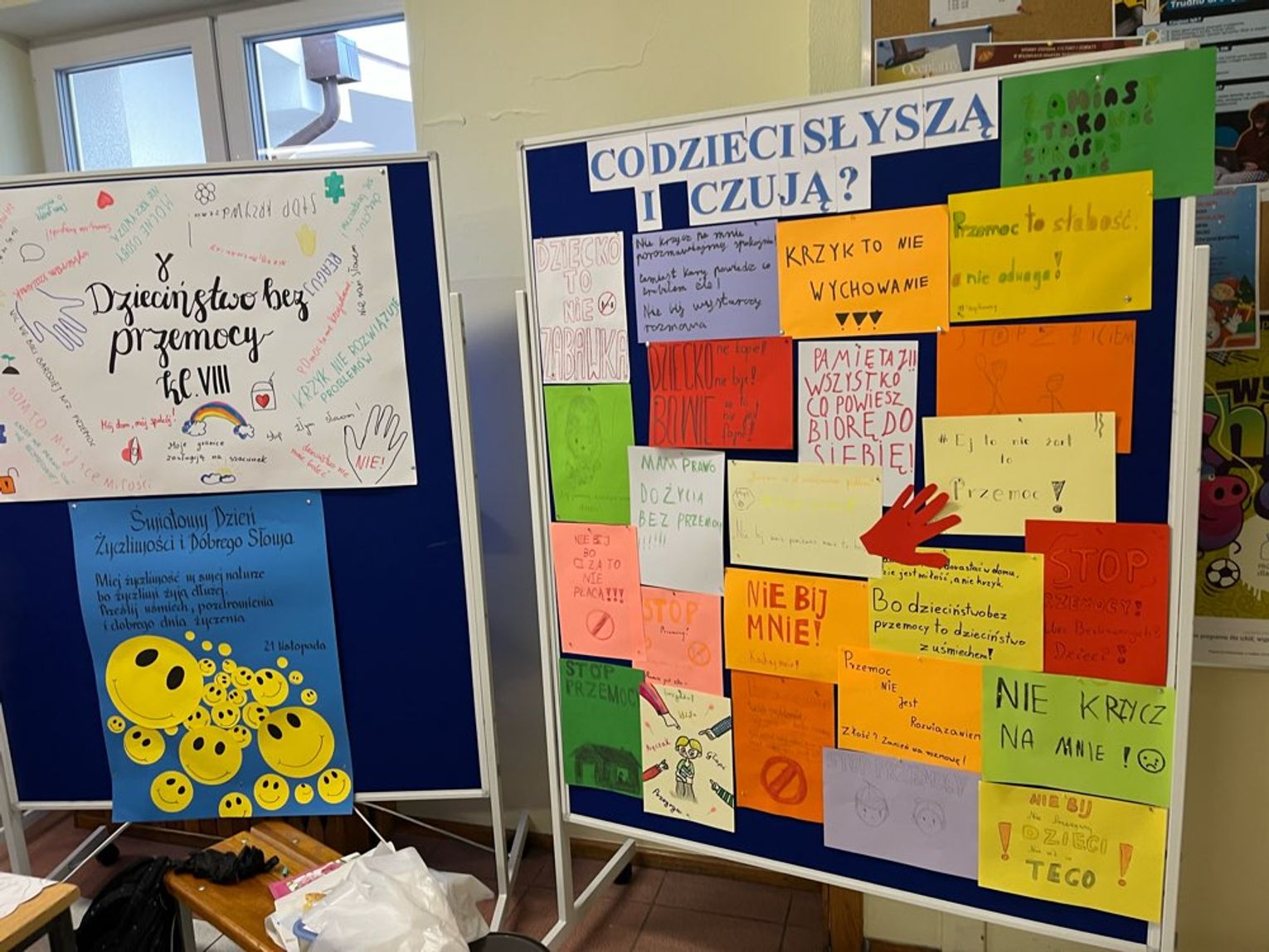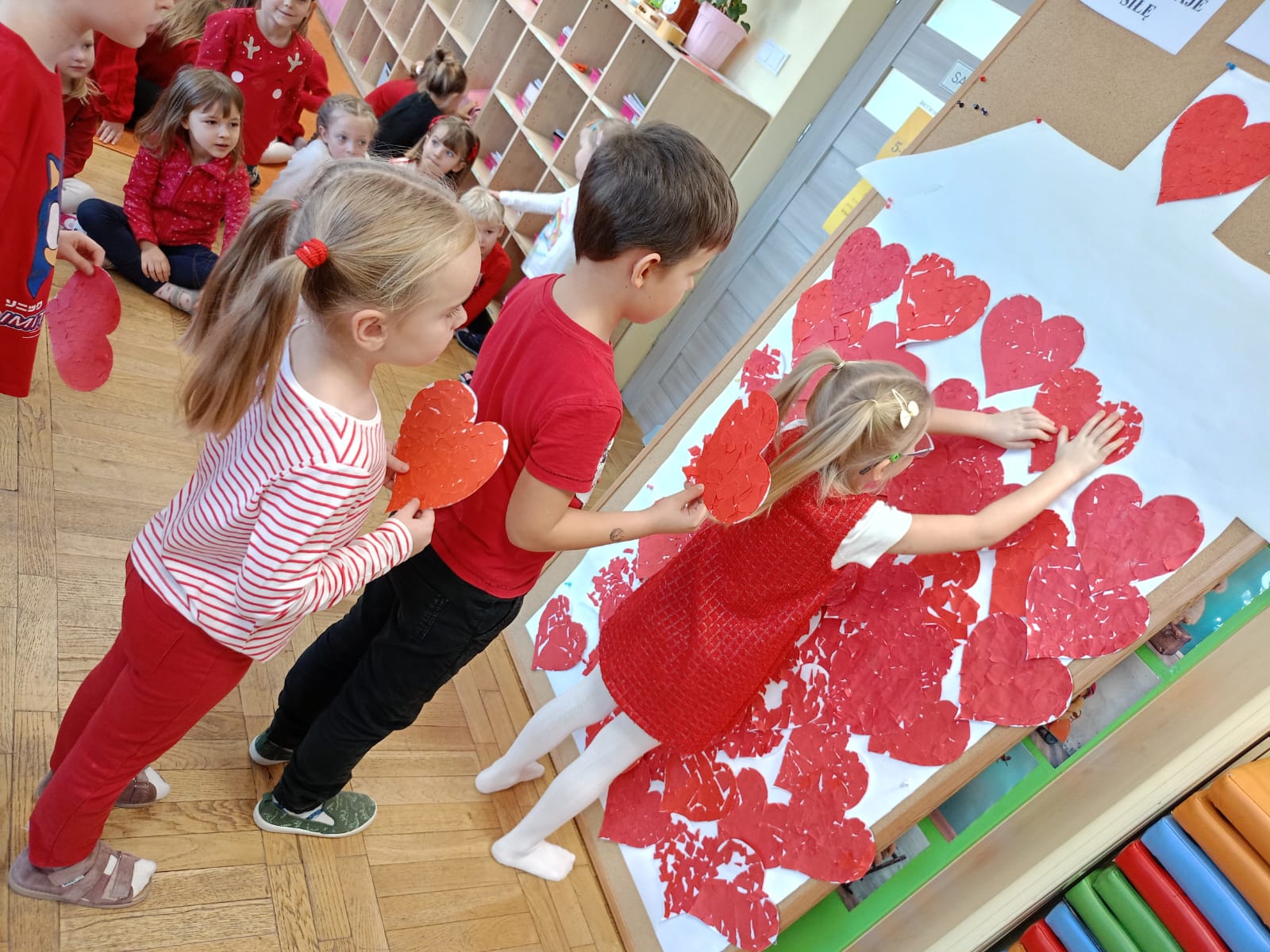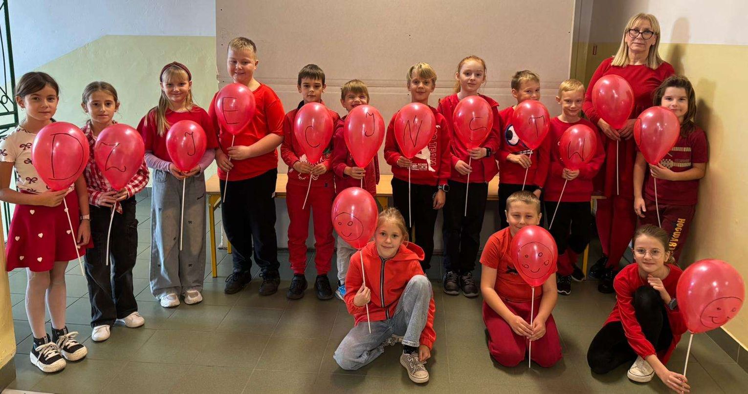 - Poprzez ubiór w kolorze czerwonym chcieliśmy wyrazić swój sprzeciw przeciwko wszelkim aktom agresji zarówno ze strony rówieśników jak i dorosłych. Przedszkolaki zbudowały dom pełen serduszek, uczniowie klas młodszych przygotowały hasła i balony w kolorze czerwonym. Starsi uczniowie wystosowali apel do dorosłych poprzez wykonanie kartek. Klasa ósma wyraziła swój sprzeciw poprzez symboliczny plakat - opowiada Ewa Biełuszka, szkolny psycholog i opiekun Szkolnego Koła Wolontariatu.