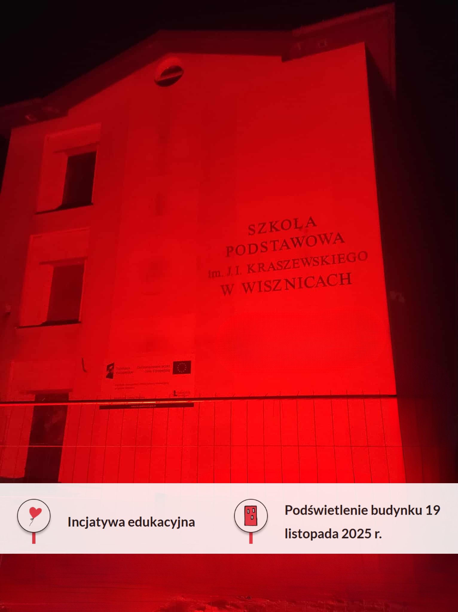 - O godzinie 17.00 nasz szkolny budynek został symbolicznie podświetlony na czerwono. W ten sposób mówimy stanowcze "nie" dla przemocy!!! Dziękujemy rodzicom za przygotowanie słodkości, Panu Krzysztofowi za podświetlenie budynku szkoły oraz wszystkim, którzy włączyli się w akcję. #DzieciństwobezPrzemocy - zaznacza Ewa Biełuszka.