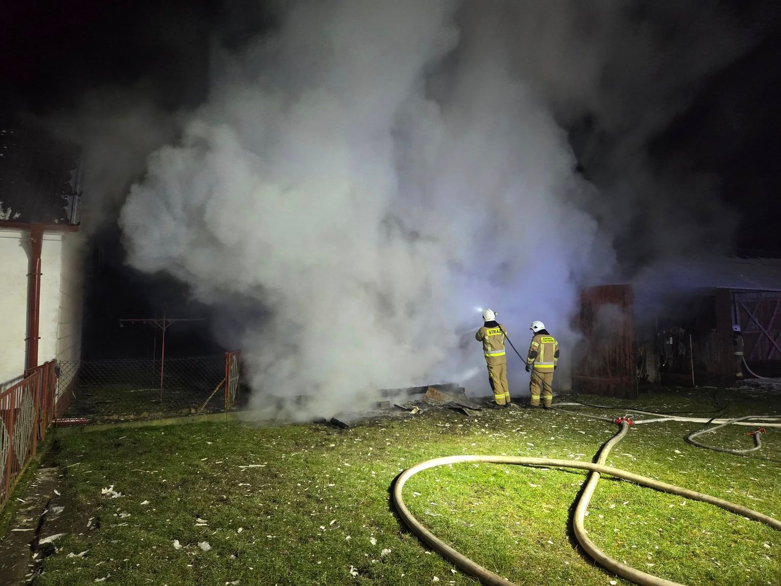 Pożar budynku gospodarczego stwarzał bezpośrednie zagrożenie dla przyległego domu mieszkalnego i garażu murowanego. - W pierwszej fazie gaszenia pożaru został podany prąd wody w obronie budynku mieszkalnego a następne dwa prądy były skierowane na palący się budynek gospodarczy z garażem - relacjonuje asp. Marcin Kazimierczak.