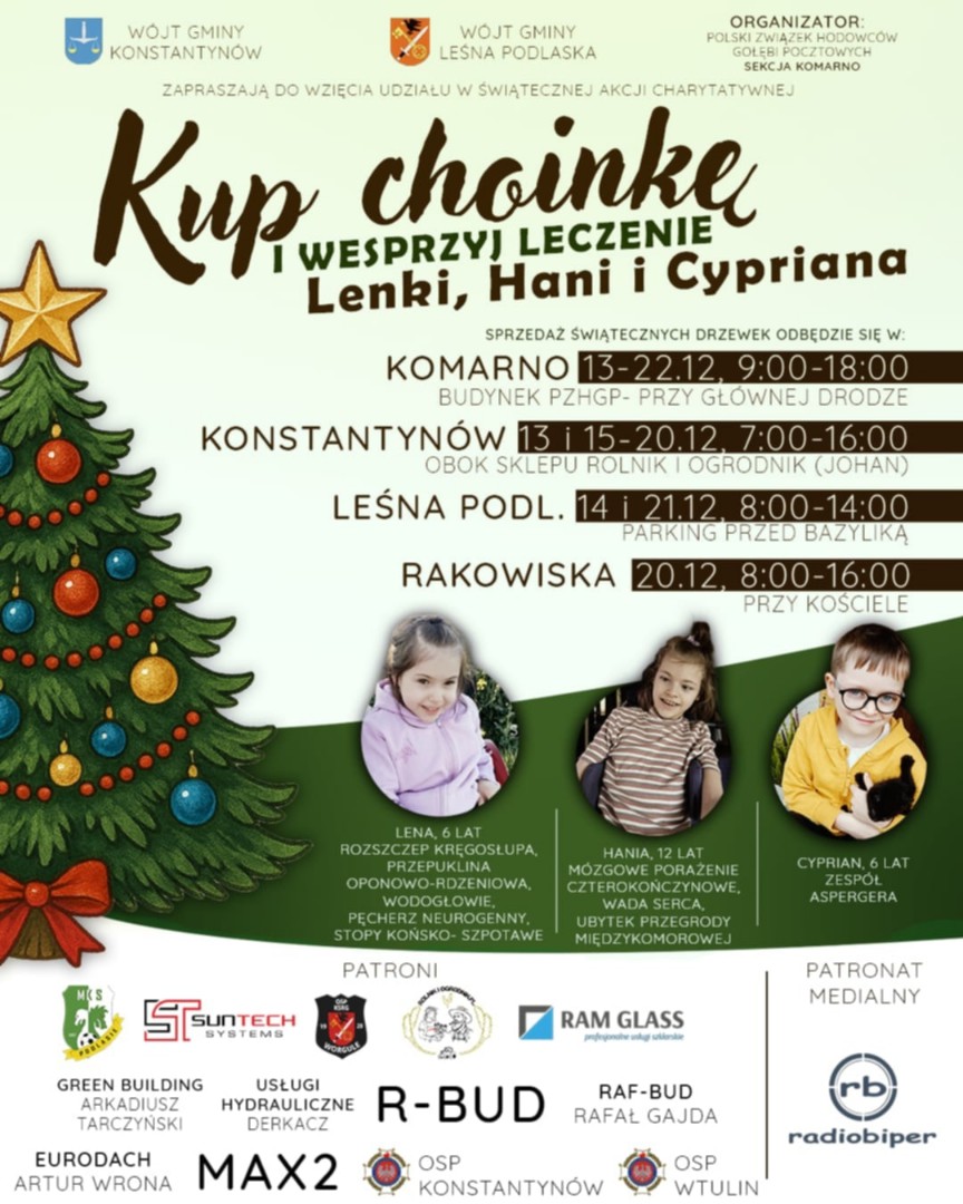 Akcja potrwa do 23 grudnia. Głównym punktem sprzedaży choinek będzie Komarno. Dodatkowo choinki będzie można kupić w Rakowiskach w pobliżu kaplicy, w Konstantynowie w punkcie, przy sklepie „Rolnik-Ogrodnik” oraz w Leśnej Podlaskiej w okolicach bazyliki.