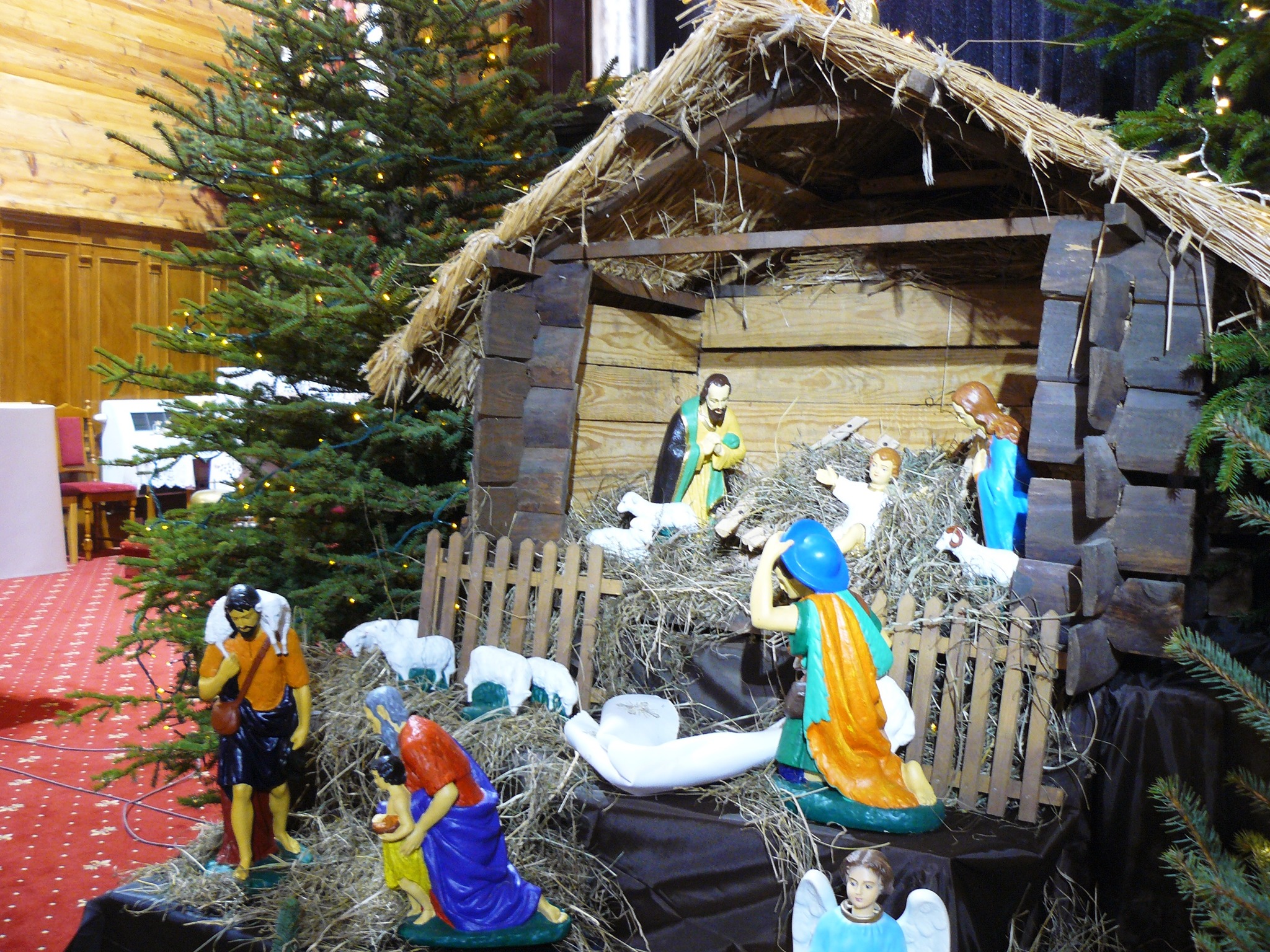 W centrum na nawie bocznej znajduje się drewniana konstrukcja i żłóbek, a w nim Jezusek. Otaczają go Maryja i Józef oraz Trzej Królowie. Nie brakuje zwierząt, które zostały wystopniowane na schodach. Ciekawym akcentem są prezenty ze słomy, które nawiązują do symboliki miłości, wdzięczności, umacniając rodzinne i społeczne więzi.
