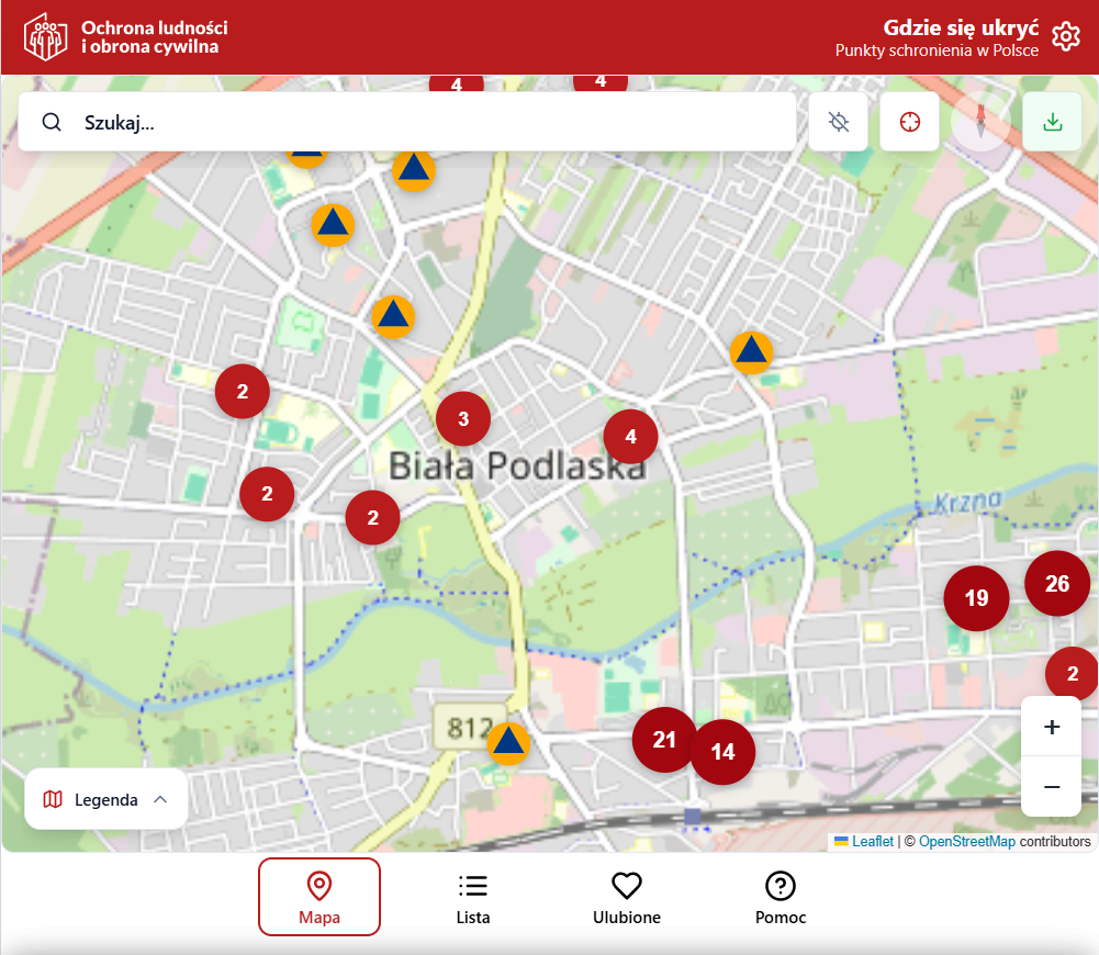 Nowy serwis gdziesieukryc.pl, powstał w ramach działań z zakresu ochrony ludności i obrony cywilnej, prowadzonych przez Państwową Straż Pożarną. Strona internetowa, dostępna także w formie aplikacji mobilnej, pozwala sprawdzić, gdzie w pobliżu znajdują się punkty schronienia i jak najszybciej do nich dotrzeć. Wystarczy smartfon, by na mapie zobaczyć najbliższe obiekty i uruchomić nawigację prowadzącą pod wskazany adres. Po wcześniejszym pobraniu danych narzędzie działa również offline.
