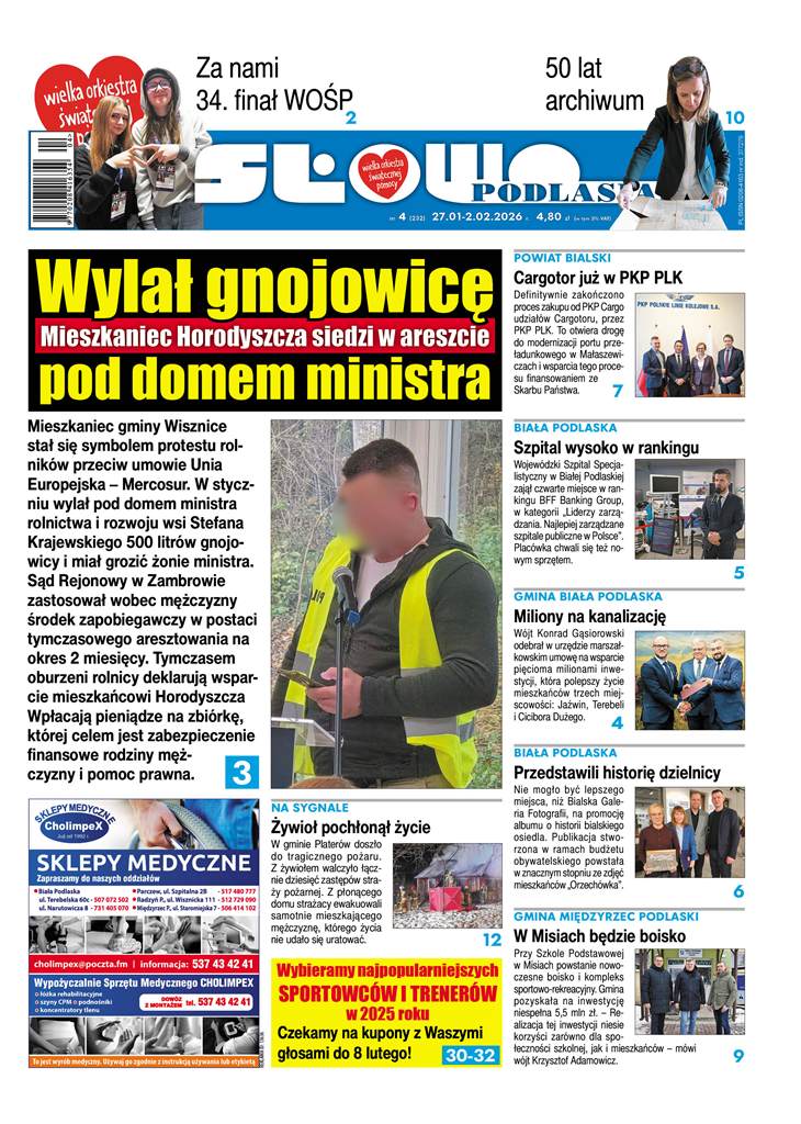 - Wylał gnojowicę pod domem ministra. Mieszkaniec Horodyszcza siedzi w areszcie. Mieszkaniec gminy Wisznice stał się symbolem protestu rolników przeciw umowie Unia Europejska - Mercosur. W styczniu wylał pod domem ministra rolnictwa i rozwoju wsi Stefana Krajewskiego 500 litrów gnojowicy i miał grozić żonie ministra. Sąd Rejonowy w Zambrowie zastosował wobec mężczyzny środek zapobiegawczy w postaci tymczasowego aresztowania na okres 2 miesięcy. Tymczasem oburzeni rolnicy deklarują wsparcie mieszkańcowi Horodyszcza. Wpłacają pieniądze na zbiórkę, której celem jest zabezpieczenie finansowe rodziny mężczyzny i pomoc prawną.