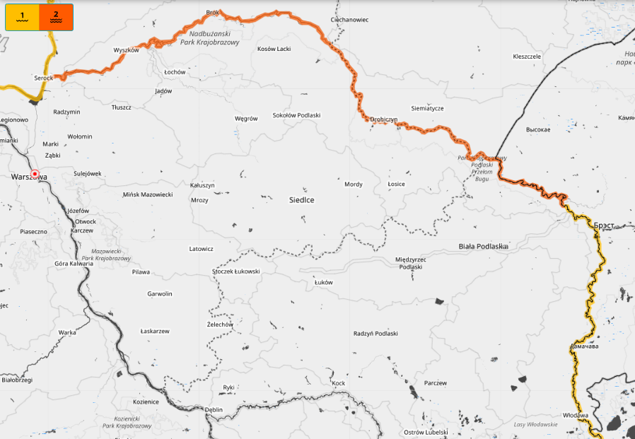Na Bugu wciąż obowiązują ostrzeżenia hydrologiczne wydane przez IMGW. Dla odcinka rzeki obejmującego m.in. powiat łosicki oraz fragment powiatu bialskiego obowiązuje ostrzeżenie drugiego stopnia przed wezbraniem z przekroczeniem stanów ostrzegawczych. Według prognoz hydrologów, w związku z występującymi zjawiskami lodowymi oraz spływem wód z górnej części zlewni, poziom wody może się wahać i wzrastać w strefie wody wysokiej i średniej. Ostrzeżenie obowiązuje od 6 marca od godziny 10:00 do 8 marca do godziny 10:00.