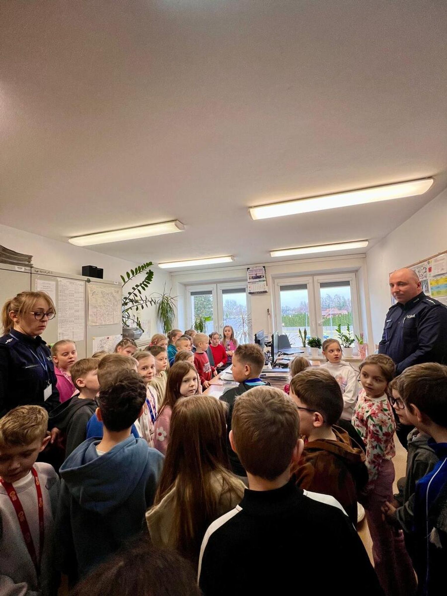 Podczas zajęć dzieci aktywnie rozmawiały o zasadach bezpiecznego poruszania się po drogach, właściwym zachowaniu w kontaktach z obcymi oraz reagowaniu w sytuacjach zagrożenia. Spotkanie miało wymiar praktyczny – uczniowie dzielili się spostrzeżeniami i rozwiewali wątpliwości dotyczące codziennych sytuacji, z którymi mogą się zetknąć. Treści zostały dostosowane do wieku uczestników.