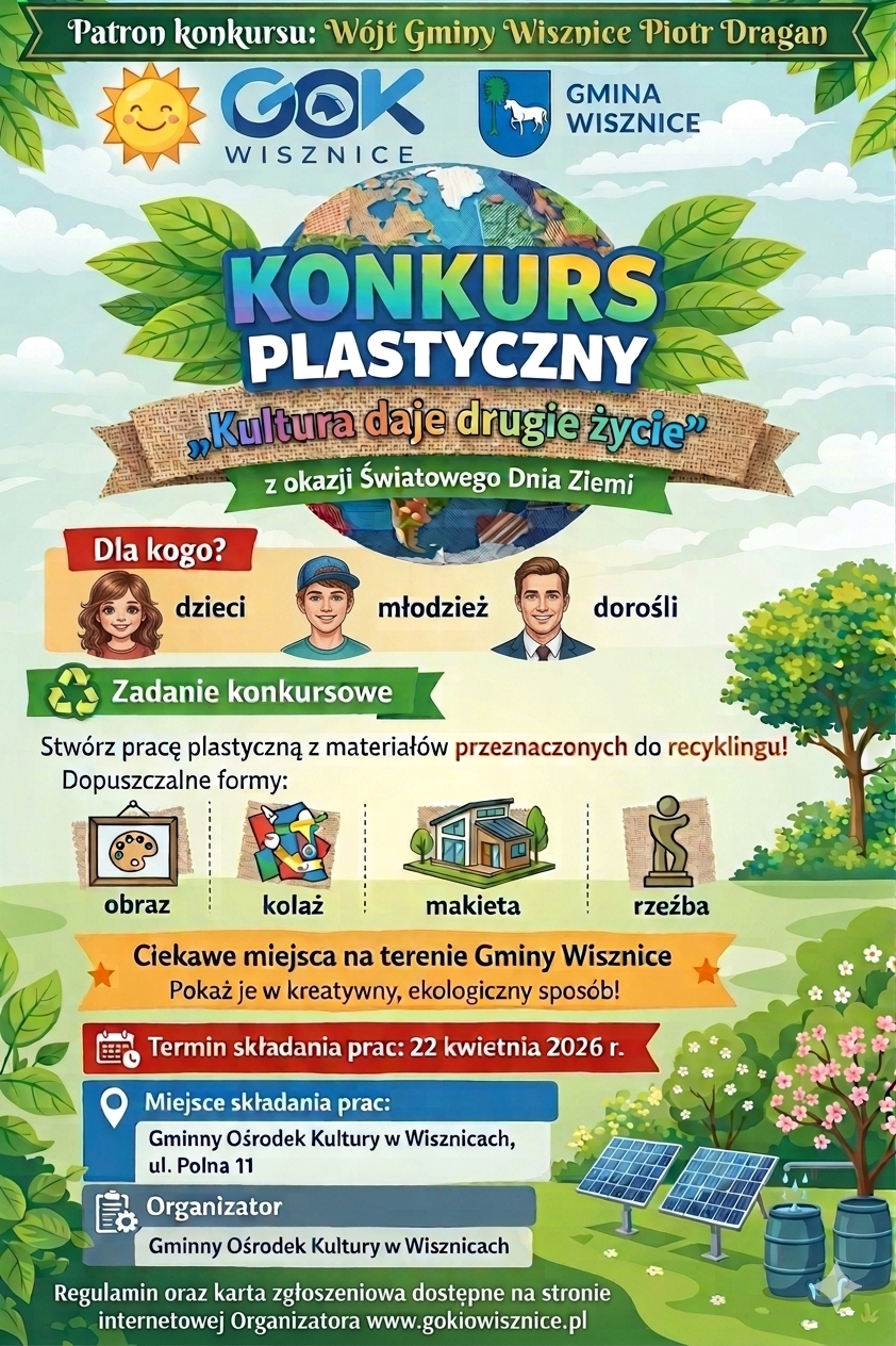 Termin składnia prac to 22 kwietnia 2026 r. Prace należy przynosić do siedziby Gminnego Ośrodka Kultury w Wisznicach, przy ulicy Polnej 11.