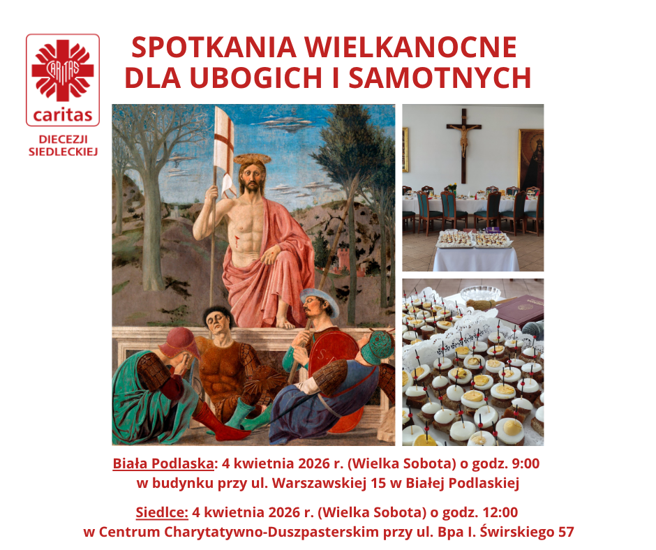 Spotkanie Wielkanocne odbędzie się 4 kwietnia 2026 r.o godz. 9 w budynku przy ul. Warszawskiej 15 w Białej Podlaskiej.
