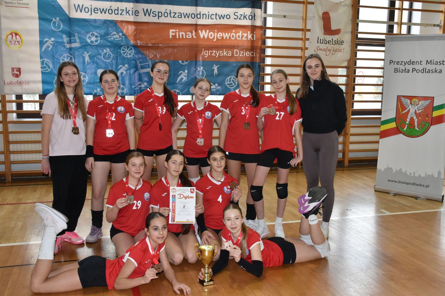 Skład mistrzowskiej drużyny SP 9 Biała Podlaska tworzyły: Marianna Bandachowska, Kornelia Chalimoniuk, Amelia Drozd, Wiktoria Florczuk, Klaudia Litwiniuk, Aleksandra Marczuk, Natalia Milaniuk, Iga Rudzka, Antonina Sidoruk, Zuzanna Śliwa, Nikola Wnuk, Kornelia Złotek, Zuzanna Rozpotyńska oraz Hanna Żylik.