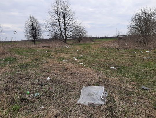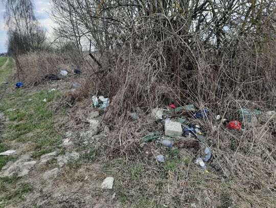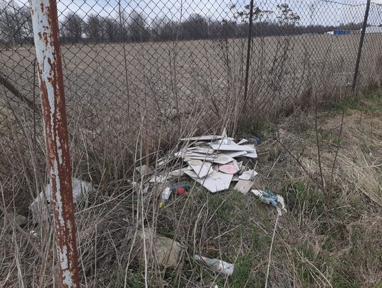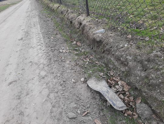 Problem dotyczy ponadkilometrowego odcinka, gdzie niemal na każdym kroku można natknąć się na porzucone odpady. Nie są to tylko przypadkowe papierki – to regularne, dzikie składowiska. Wzdłuż drogi i w przyległych pasach zieleni zalegają dziesiątki zużytych opon, hałdy materiałów budowlanych, gruz, fragmenty doniczek oraz plastikowe worki z niewiadomą zawartością. Wśród pól znaleźliśmy nawet błotnik samochodowy, wiadra, porzucone obuwie i ubrania. Mniejsze śmieci, takie jak butelki, puszki czy opakowania po żywności, są roznoszone przez wiatr na znaczne odległości, zanieczyszczając okoliczne tereny uprawne.