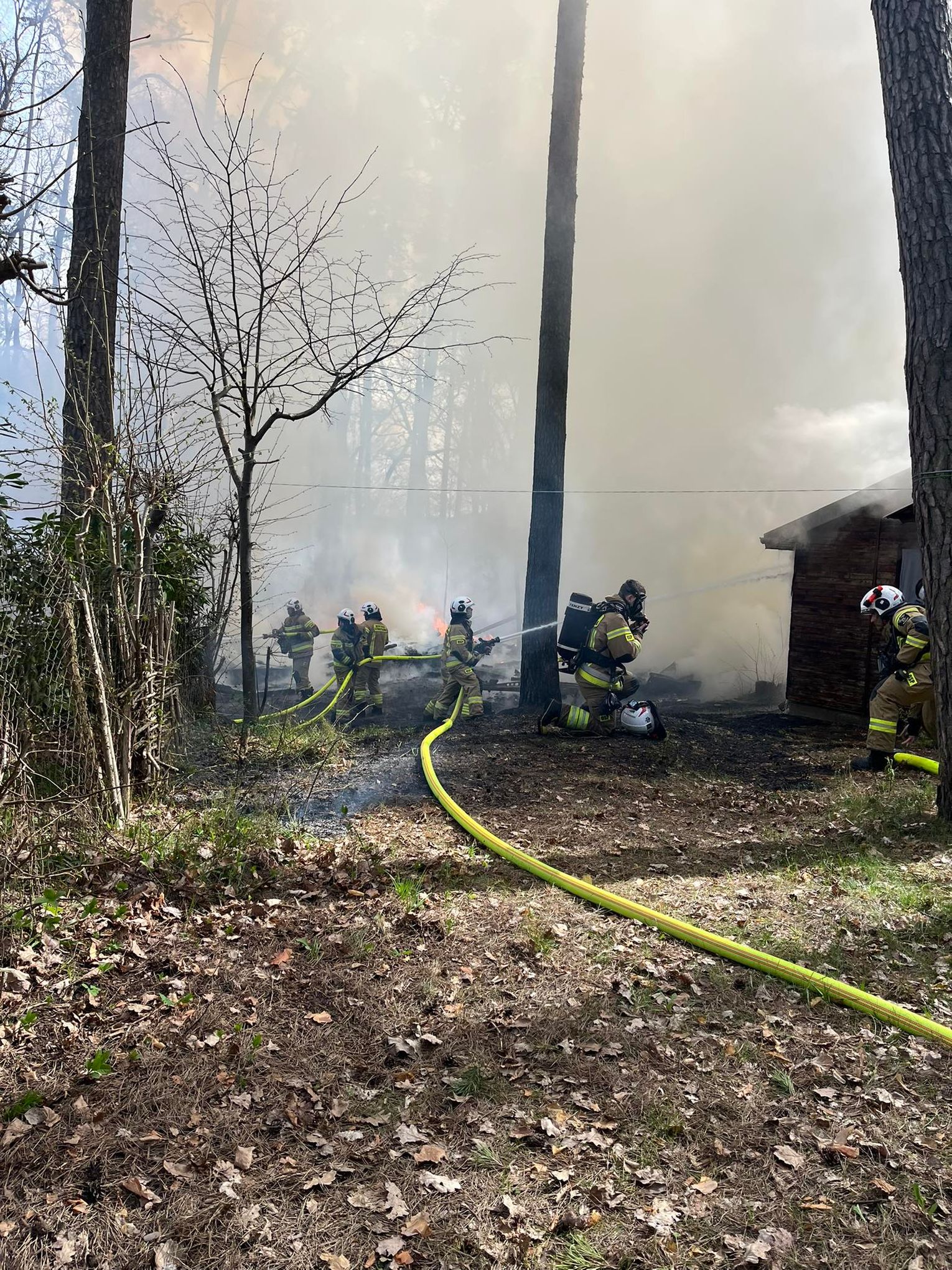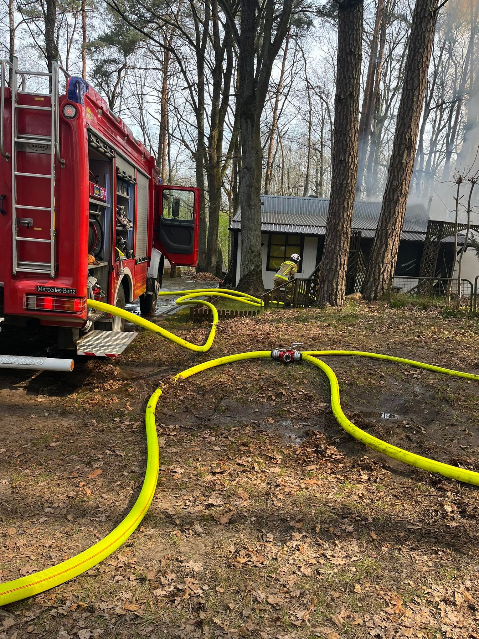 Zgłoszenie o pojawieniu się ognia wpłynęło do służb o godzinie 10:20. Sytuacja była poważna ze względu na ryzyko przeniesienia się pożaru na sąsiednie obiekty, dlatego na miejsce natychmiast skierowano znaczne siły ratownicze.