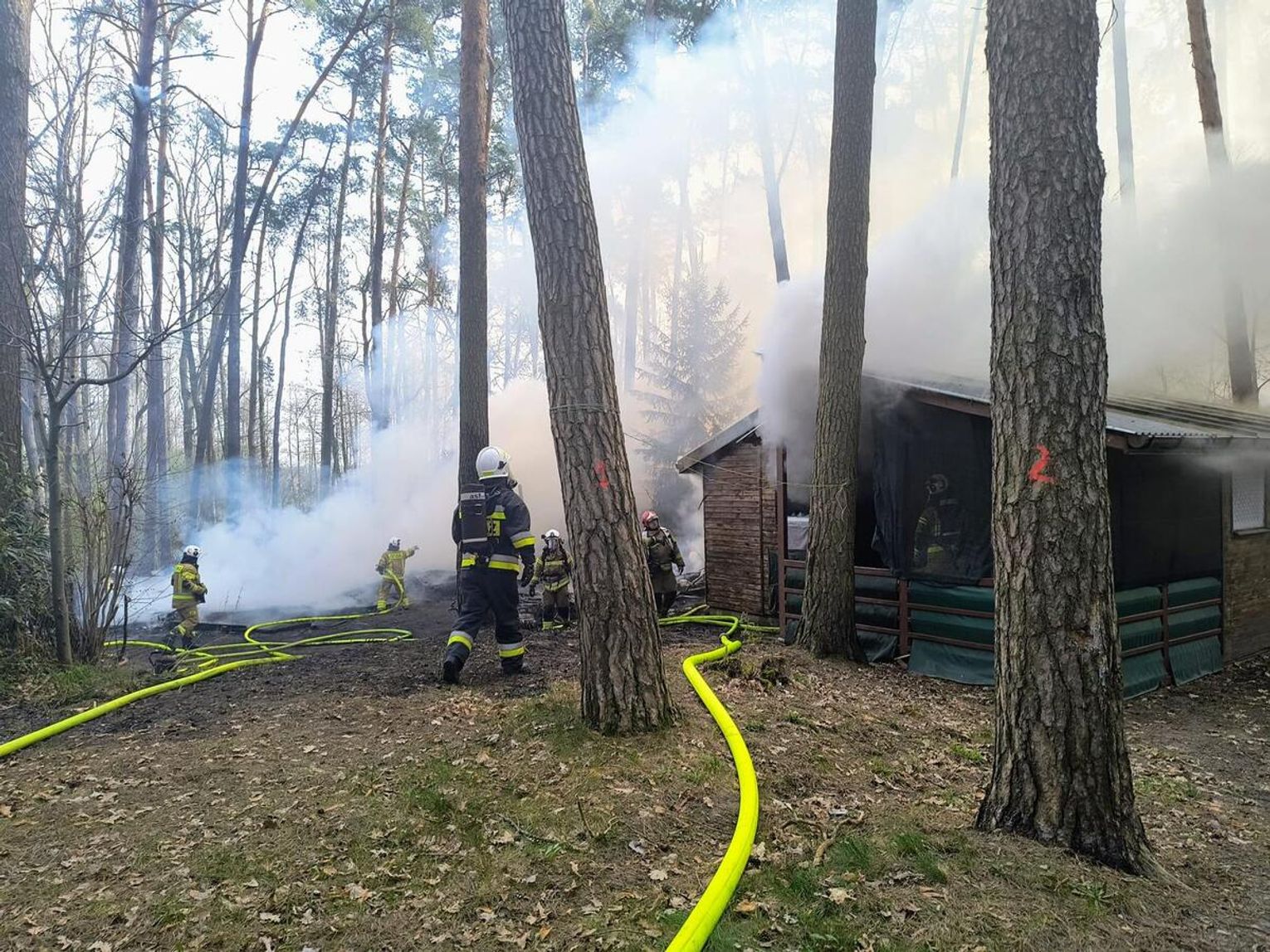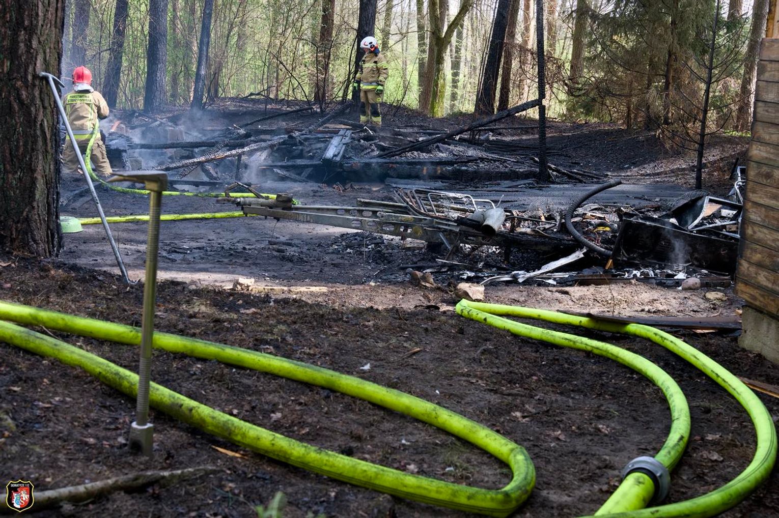 Strażacy w pierwszej kolejności zabezpieczyli budynek stojący w bezpośrednim sąsiedztwie pożaru, schładzając go wodą. Jednocześnie trwało gaszenie płonącego domku. Mimo podjętych działań, ogień rozwinął się na tyle szybko, że obiekt, w którym wybuchł pożar, spłonął całkowicie.