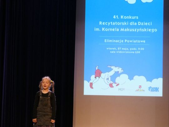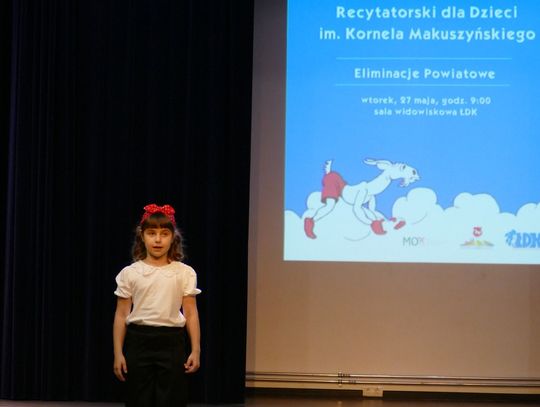 Słowo potrafi poruszyć, wzruszyć i zachwycić – udowodnili to młodzi uczestnicy powiatowego etapu 41. Konkursu Recytatorskiego im. Kornela Makuszyńskiego, który odbył się 27 maja w sali widowiskowej Łosickiego Domu Kultury. W wydarzeniu wzięło udział 42 uczniów szkół podstawowych z całego powiatu – laureaci eliminacji gminnych i miejsko-gminnych.