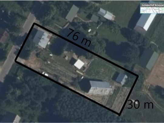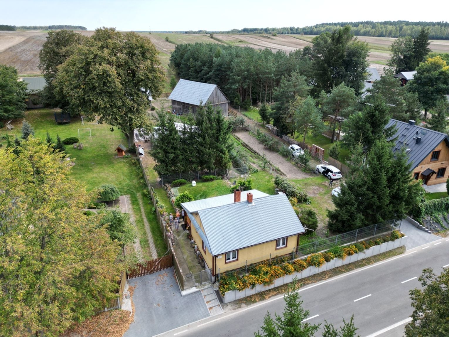 Działka siedliskowa o powierzchni 2216 m2 zabudowana domem z bala oraz budynkami gospodarczymi. Teren zagospodarowany, ogrodzony z bramą wjazdową.