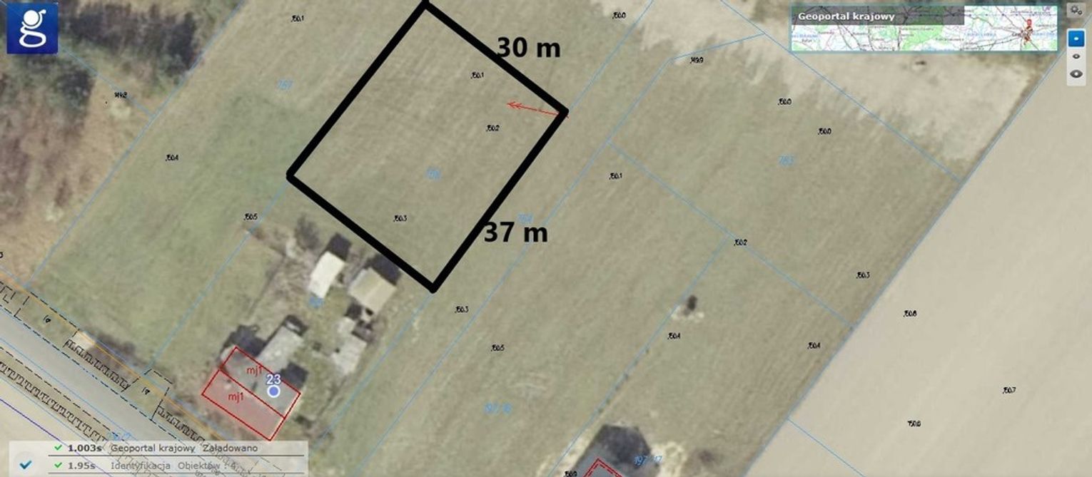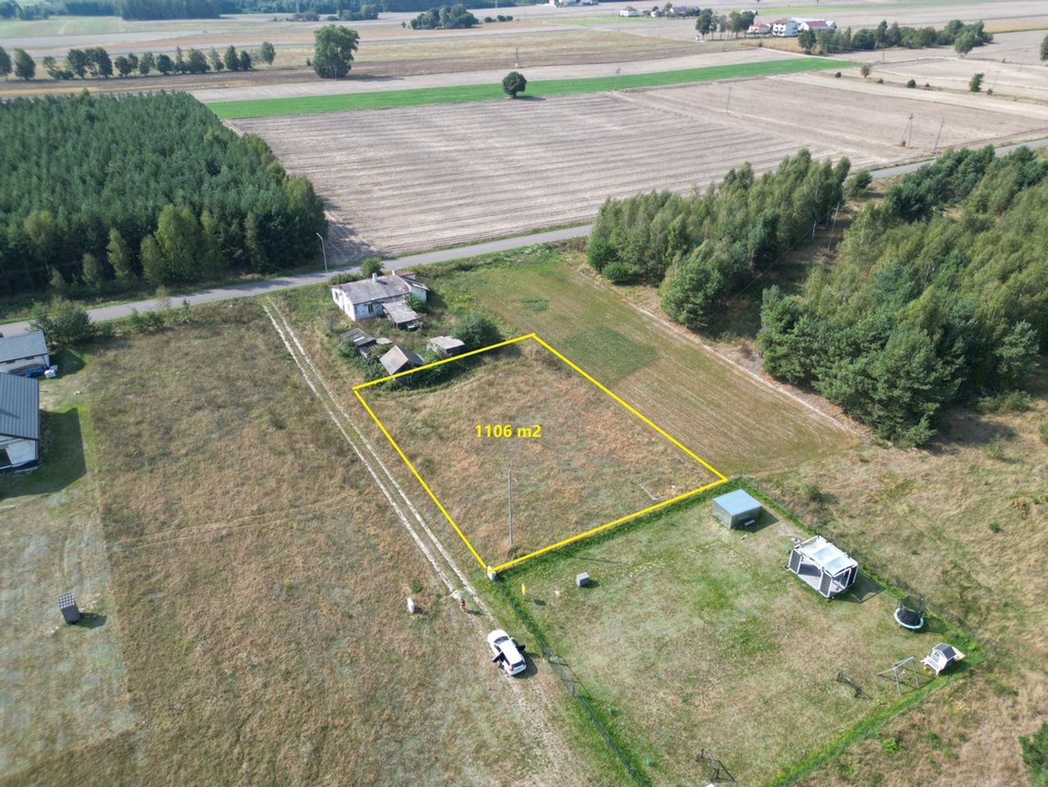 Działka ma powierzchnię 1106 m2, obok zabudowa jednorodzinna.