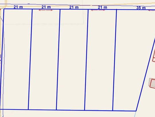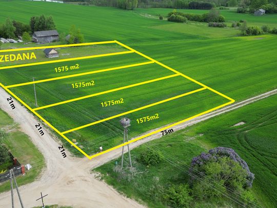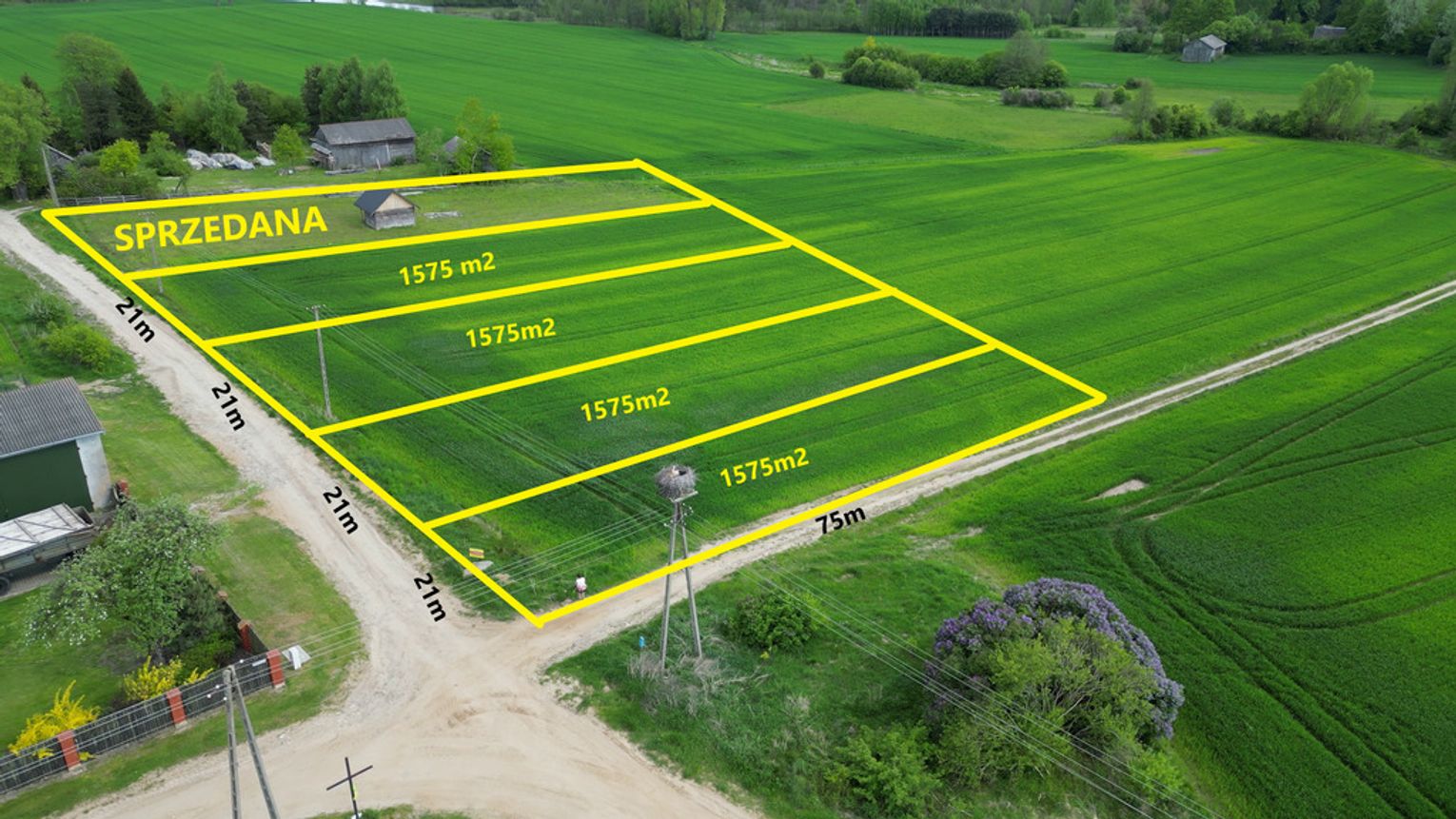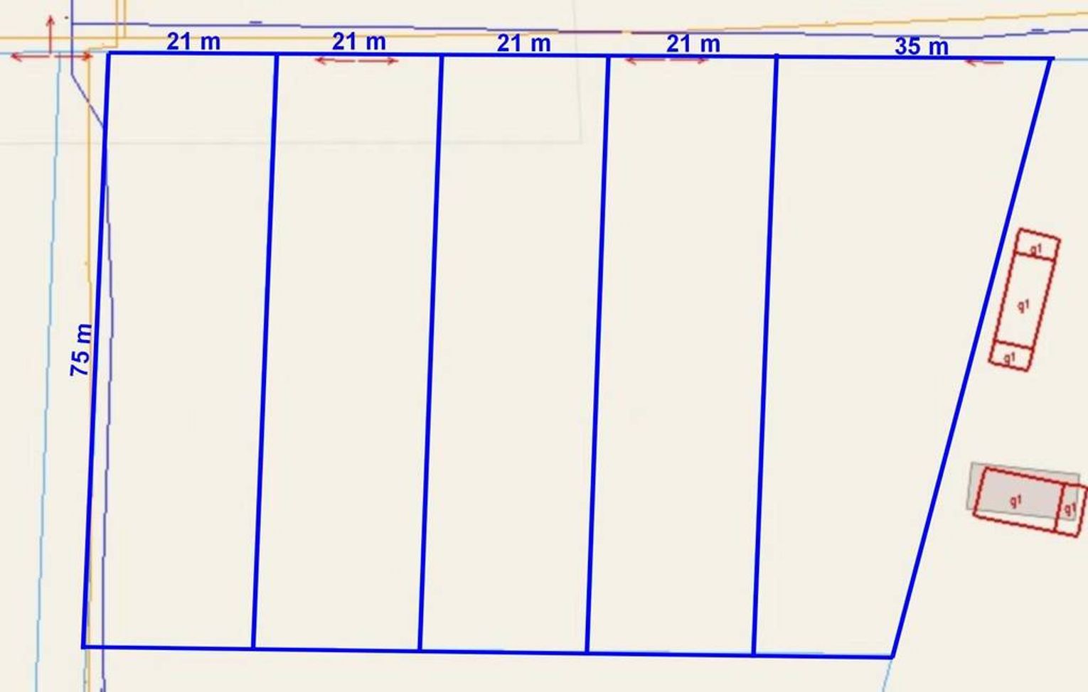 Działka o powierzchni 1 575 m² jest prostokątna i ma wymiary 21 na 75 metrów.