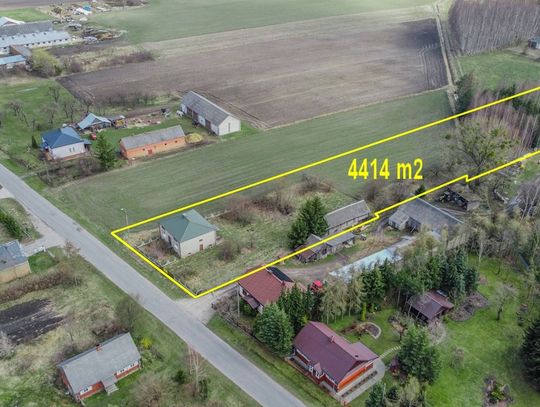Duża, częściowo ogrodzona działka o powierzchni 4414 m2.