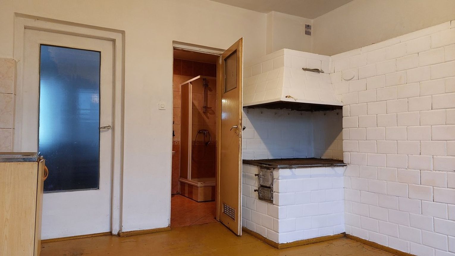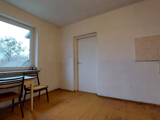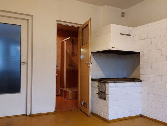 Ogrzewany piecem kaflowym, jeden z pokoi nieogrzewany