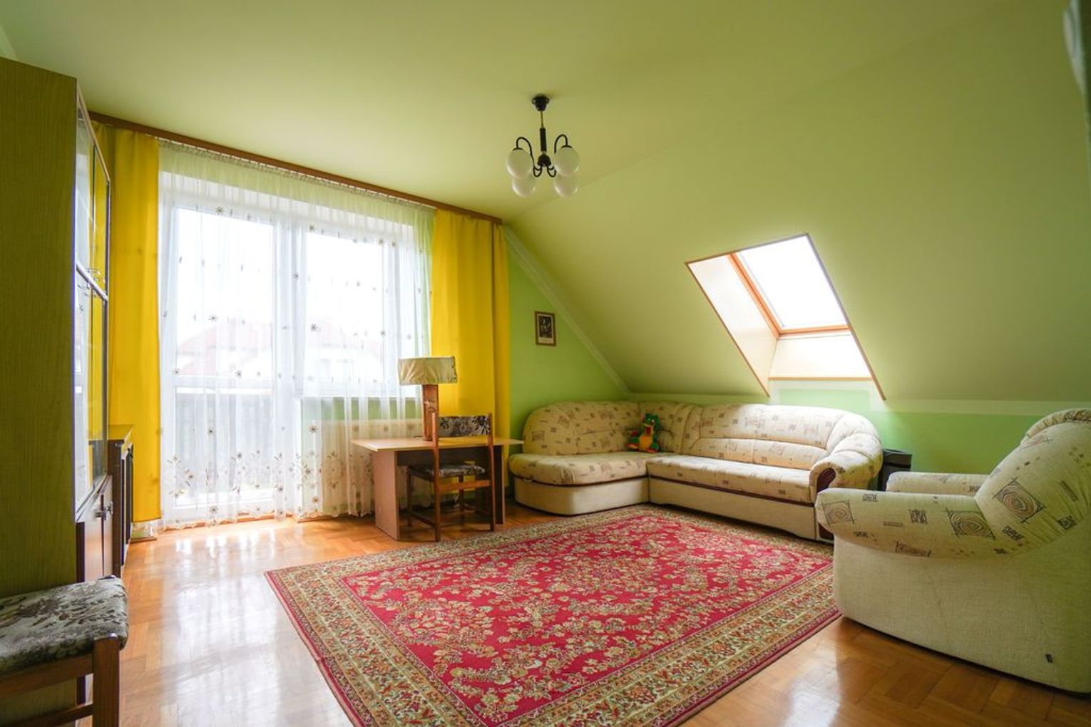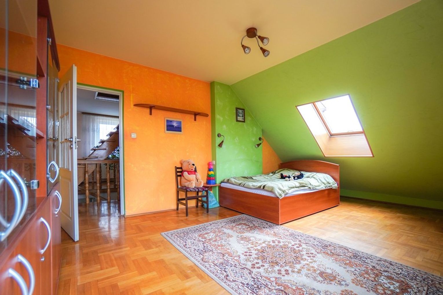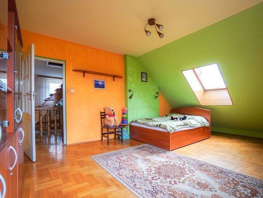 - poddasze: trzy sypialnie, duża łazienka, korytarz