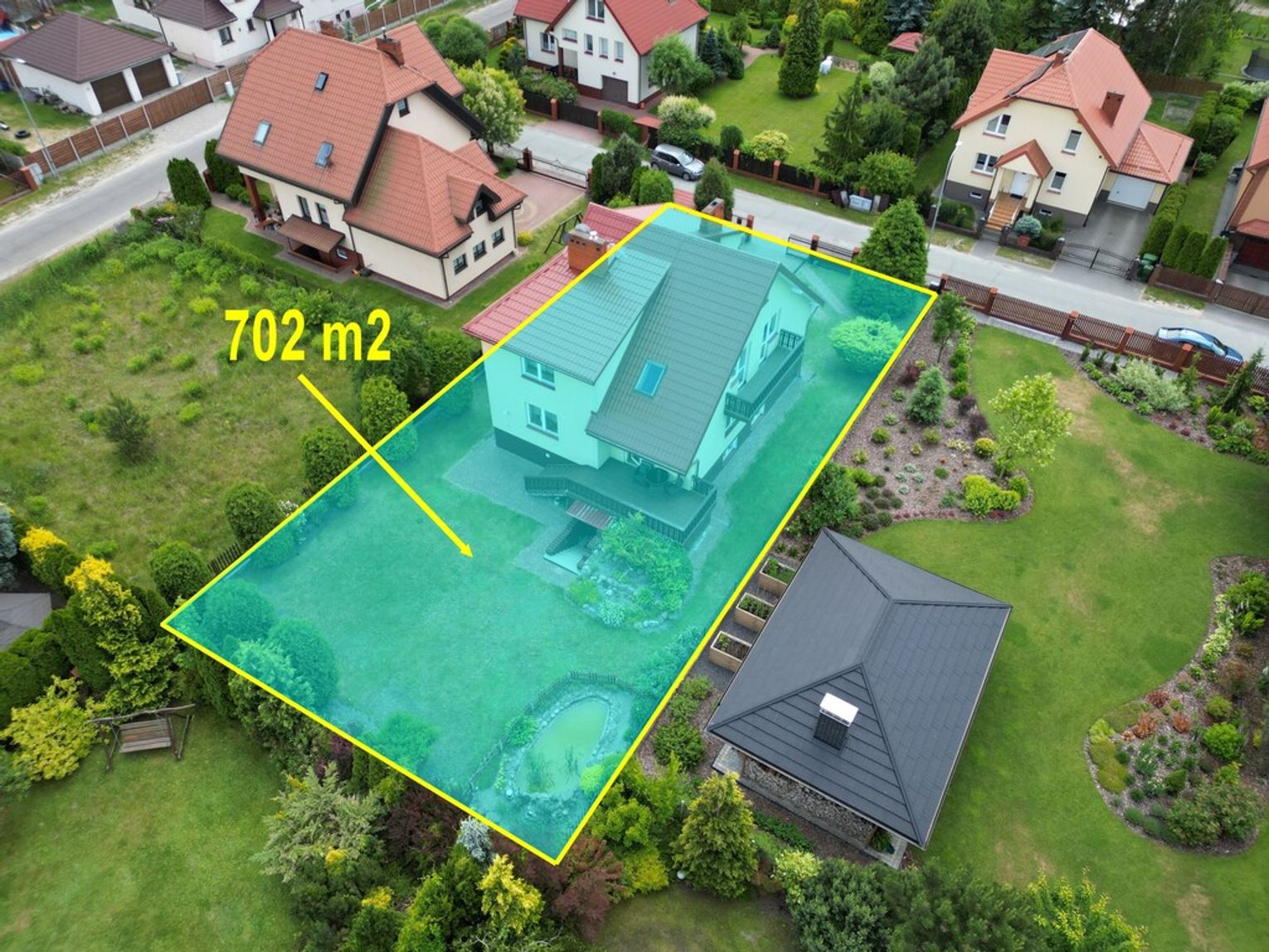 Powierzchnia działki zajmuje obszar 702 m2