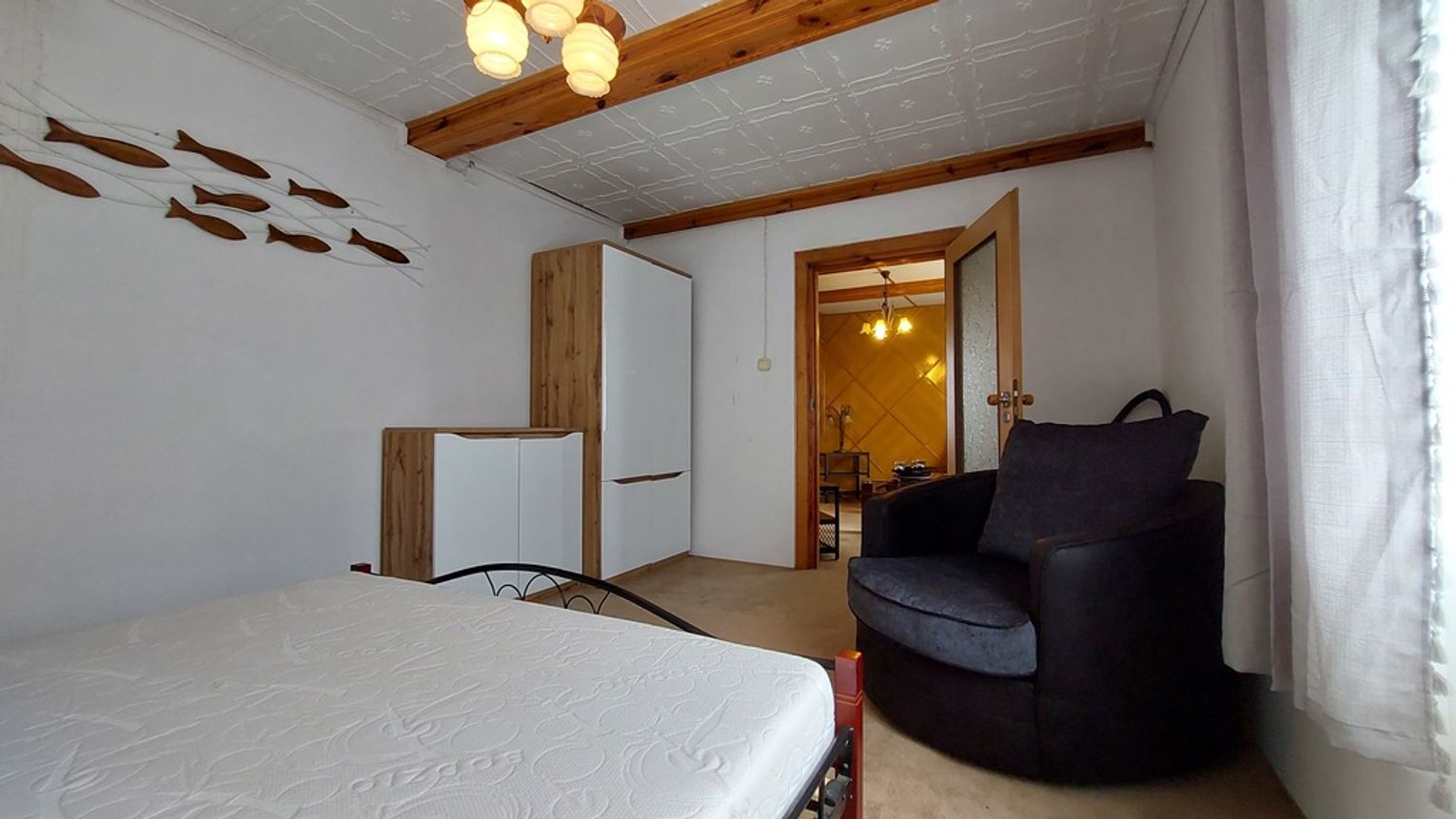 Na podłogach panele i wykładzina podłogowa