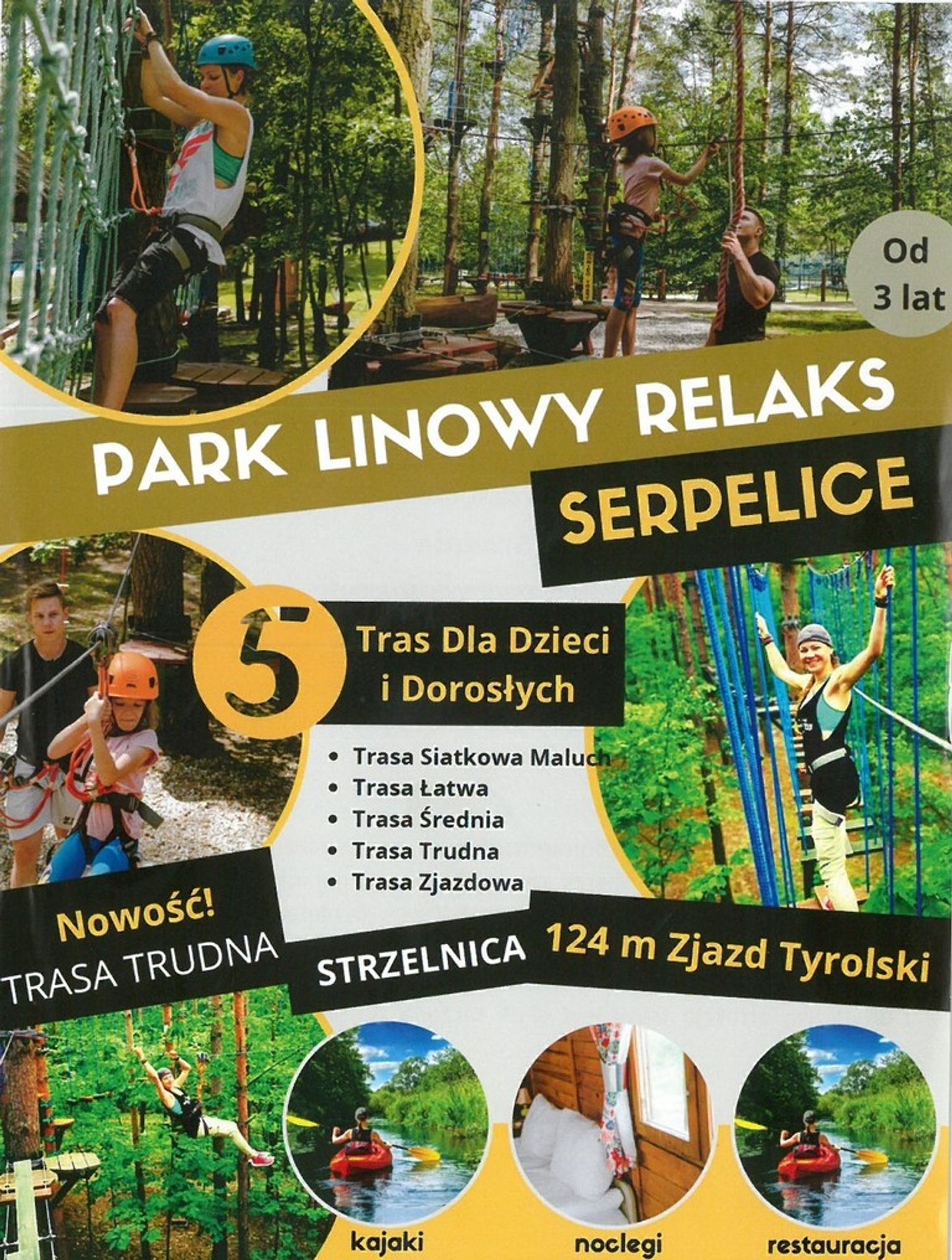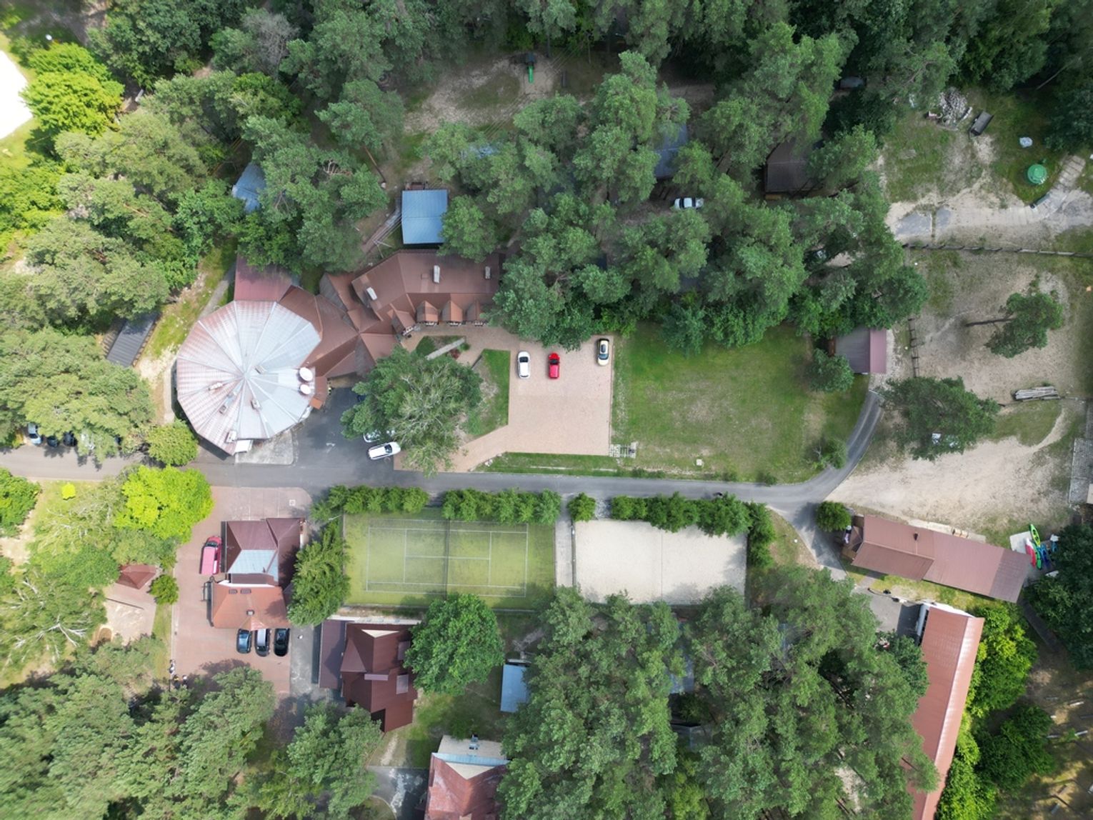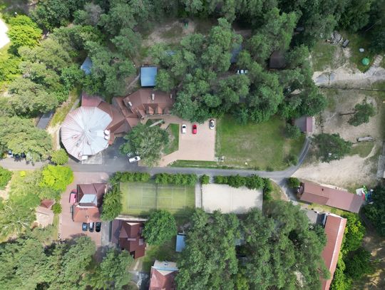boisko do siatkówki i kort tenisowy, park linowy dla dzieci i dorosłych.