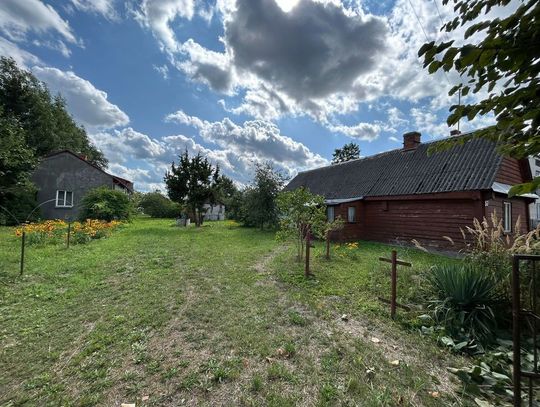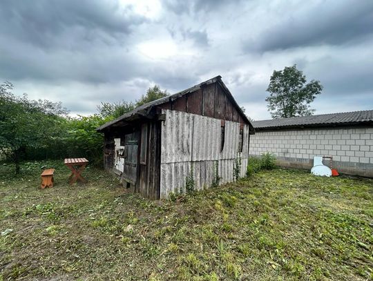 * Na nieruchomości znajdują się drewniane budynki gospodarcze nadające się do rozbiórki oraz stary dom drewniany o pow. 50m2, w którym znajduje się piec kaflowy. Może posłużyć jako domek letniskowy. Do domku dobudowano część, która służy jako pomieszczenie gospodarcze.