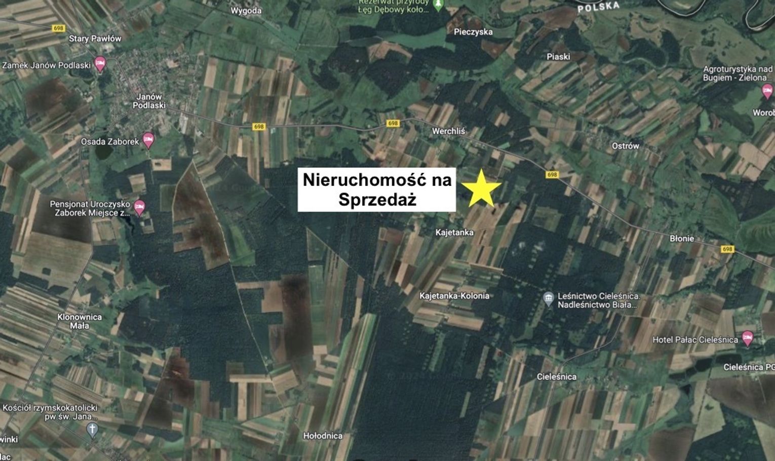 Atrakcyjne, niezabudowane działki Rolno-Leśne pomiędzy Janowem Podlaskim a Cieleśnicą w otoczeniu pięknych lasów w Werchlisiu, gm. Janów Podlaski