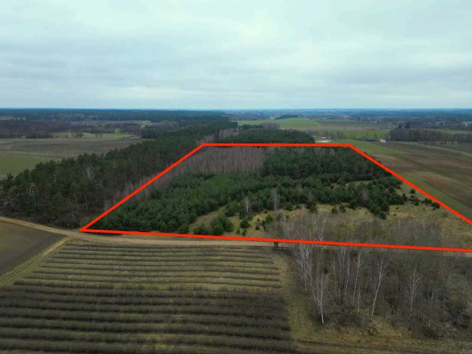 Działki Zalesione z przewagą drzew iglastych, dojazd drogą gruntową