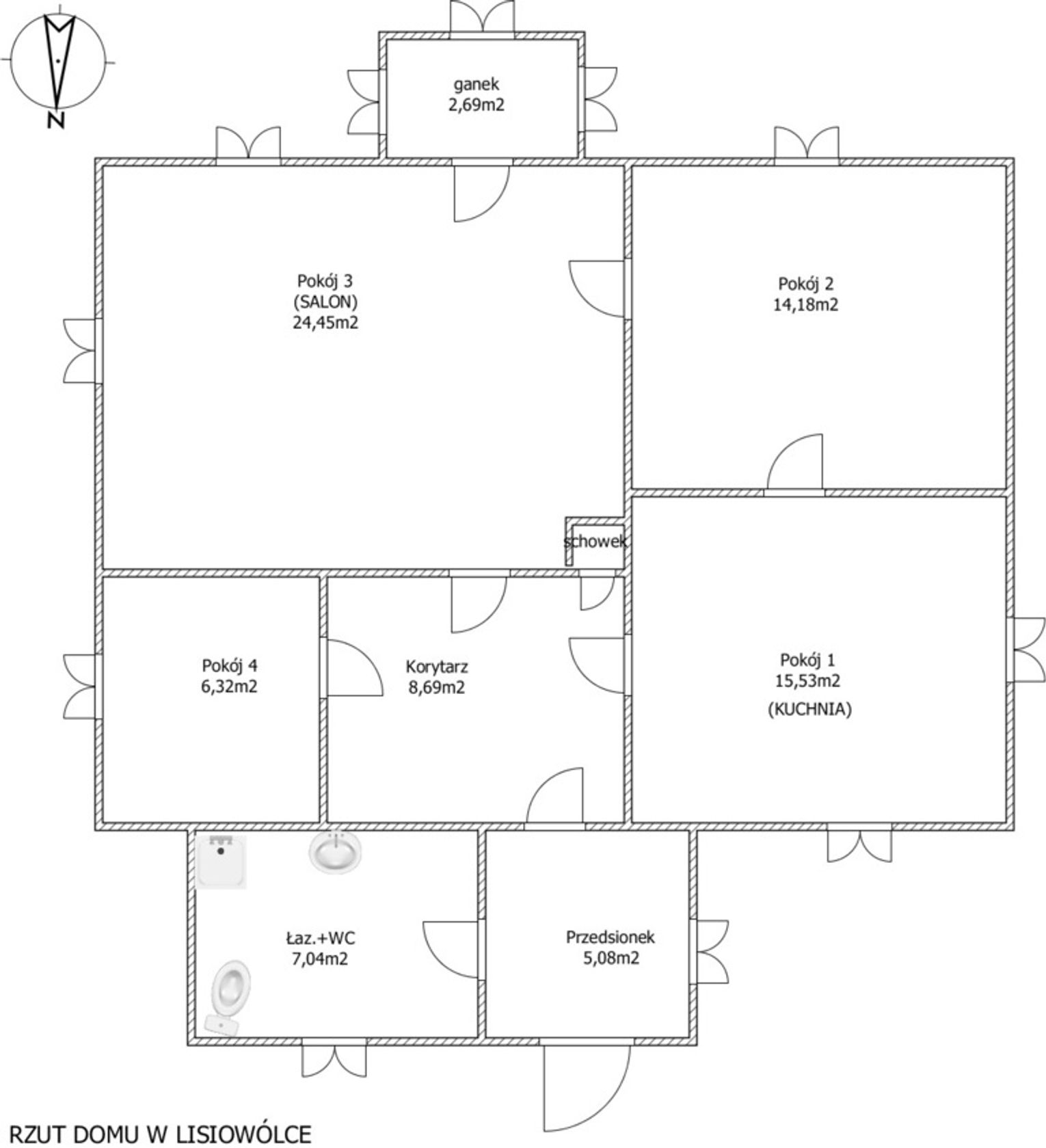 - dom drewniany jednokondygnacyjny z poddaszem nieużytkowym