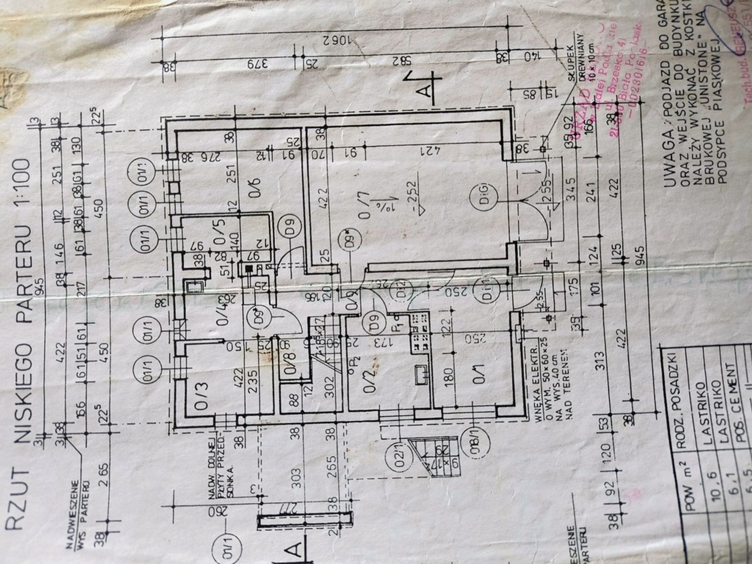 Dom posiada łącznie salon, 4 pokoje, 2 łazienki, oraz garderobę, co czyni go idealnym miejscem dla większej rodziny. Na niskim parterze znajdują się pomieszczenia techniczne, kuchnia oraz garaż pod budynkiem oferuje bezpieczne miejsce na samochód.