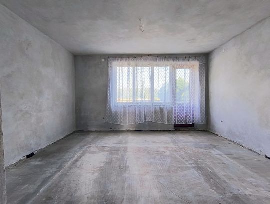 * Potencjał: Dom wymaga wykończenia, co daje nowemu właścicielowi możliwość adaptacji wnętrz według własnych potrzeb.
