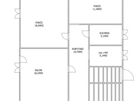 - Liczba pokoi: 3 (salon z balkonem i 2 pokoje), oddzielna kuchnia i łazienka