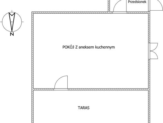 Znajdziesz tu przytulny salon z kominkiem z częścią kuchenną, w której możesz urządzić aneks wg własnego uznania oraz wyjście na taras, który otoczony przyrodą tworzy cichy zagajnik.