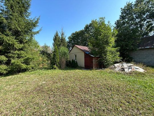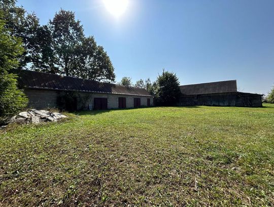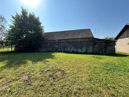 Duża działka oferuje wiele możliwości – od relaksu na świeżym powietrzu po realizację własnych pomysłów ogrodniczych czy rekreacyjnych. Na działce znajdują się budynki gospodarcze (murowana obora ok160m2 i drewniana stodoła ok. 190m2) oraz stary drewniany dom.