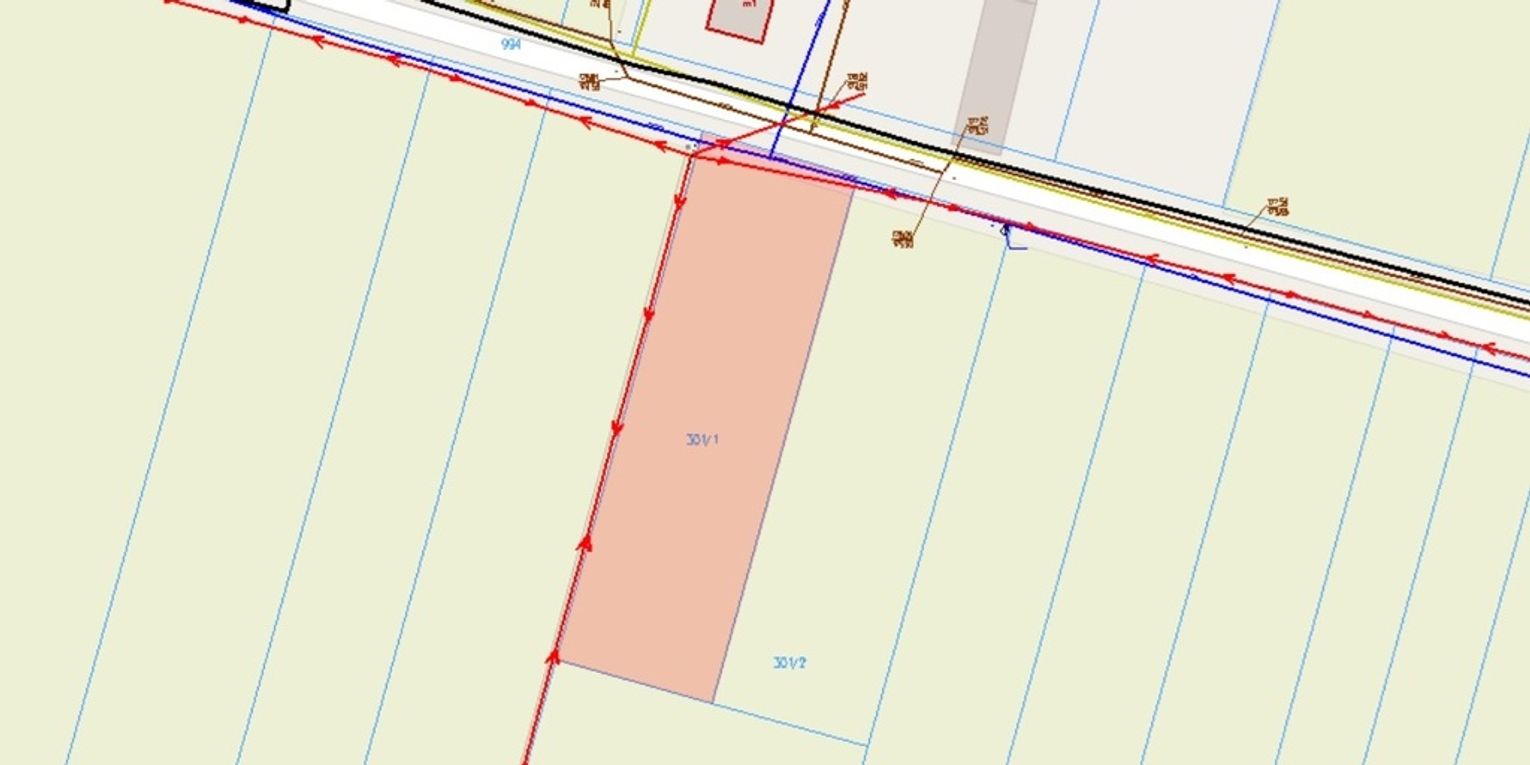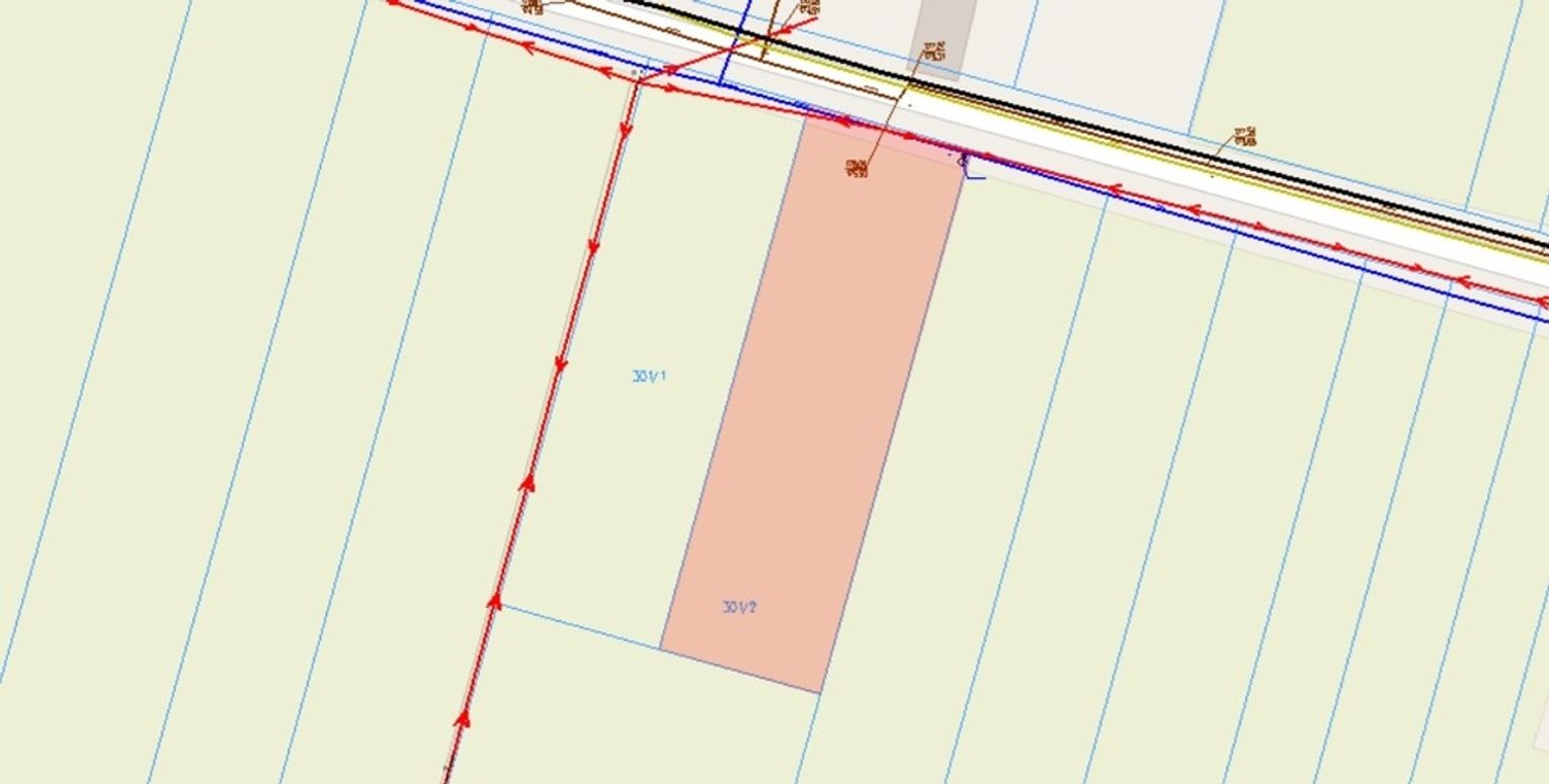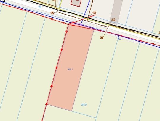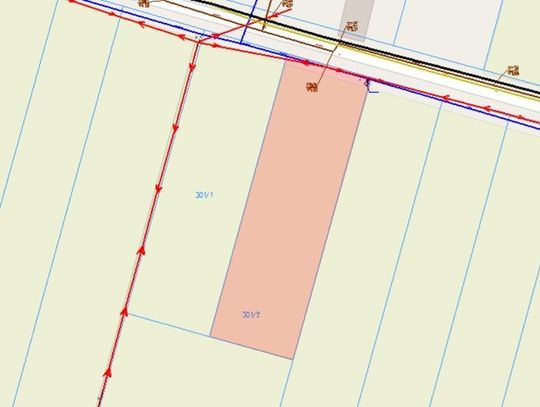 Działka nr 301/1 – 1443m2 (ze względu na linię średniego napięcia i linię zabudowy, potencjalna powierzchnia zabudowy wynosi 866m2)