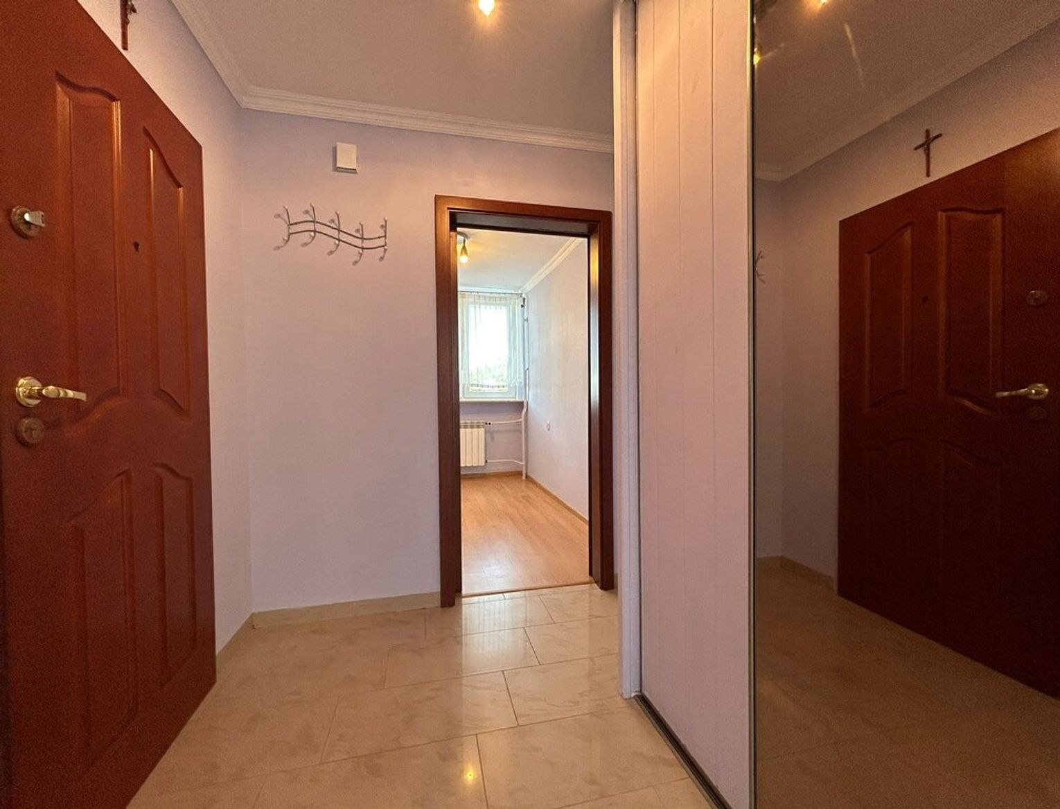 Korytarz: z dużą szafą z lustrem