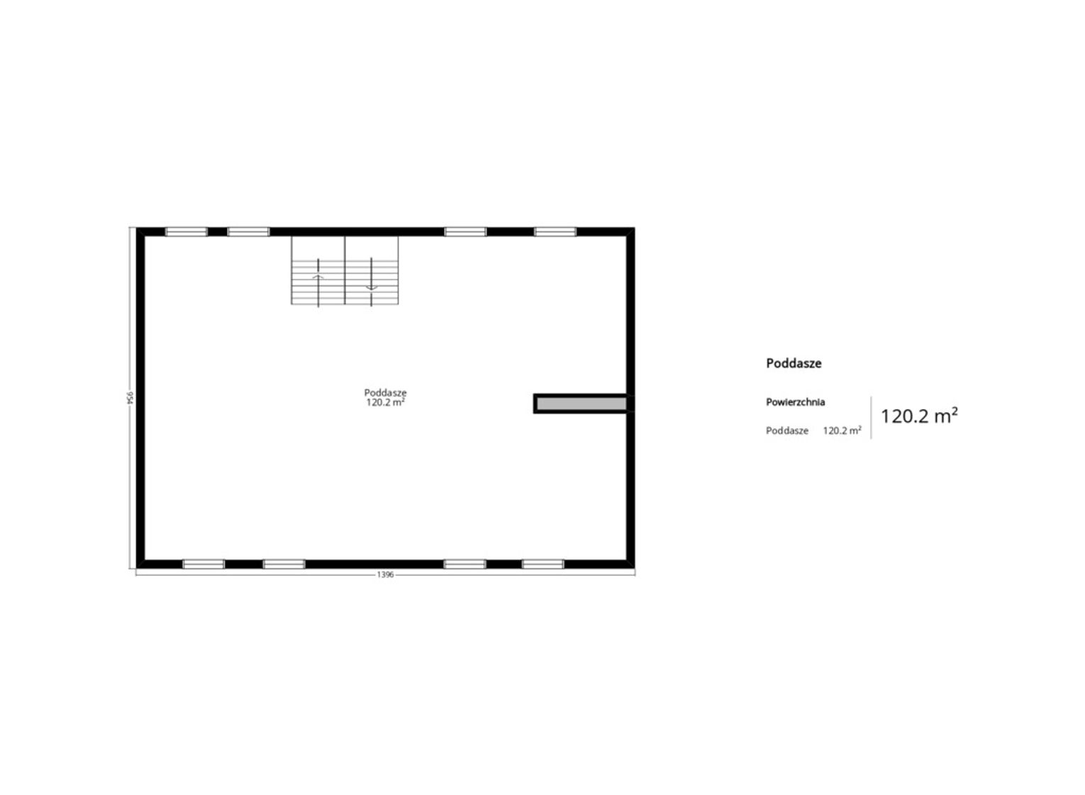 * PODDASZE 120,0m2: otwarta przestrzeń w stanie surowym zamkniętym. Część bez odbioru technicznego.