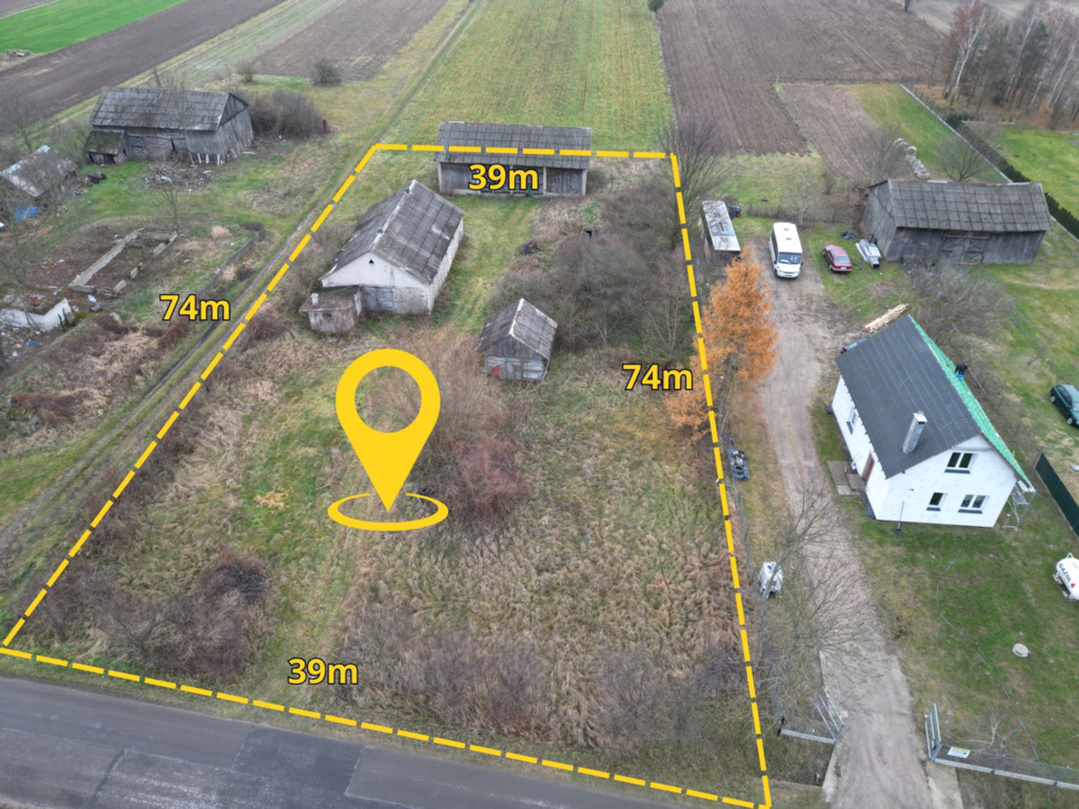 Na sprzedaż działka budowlana w cichej i sielankowej okolicy o powierzchni 2861 m². Na działce znajduje się drewniana stodoła o powierzchni 169 m² oraz budynek gospodarczy 143 m².