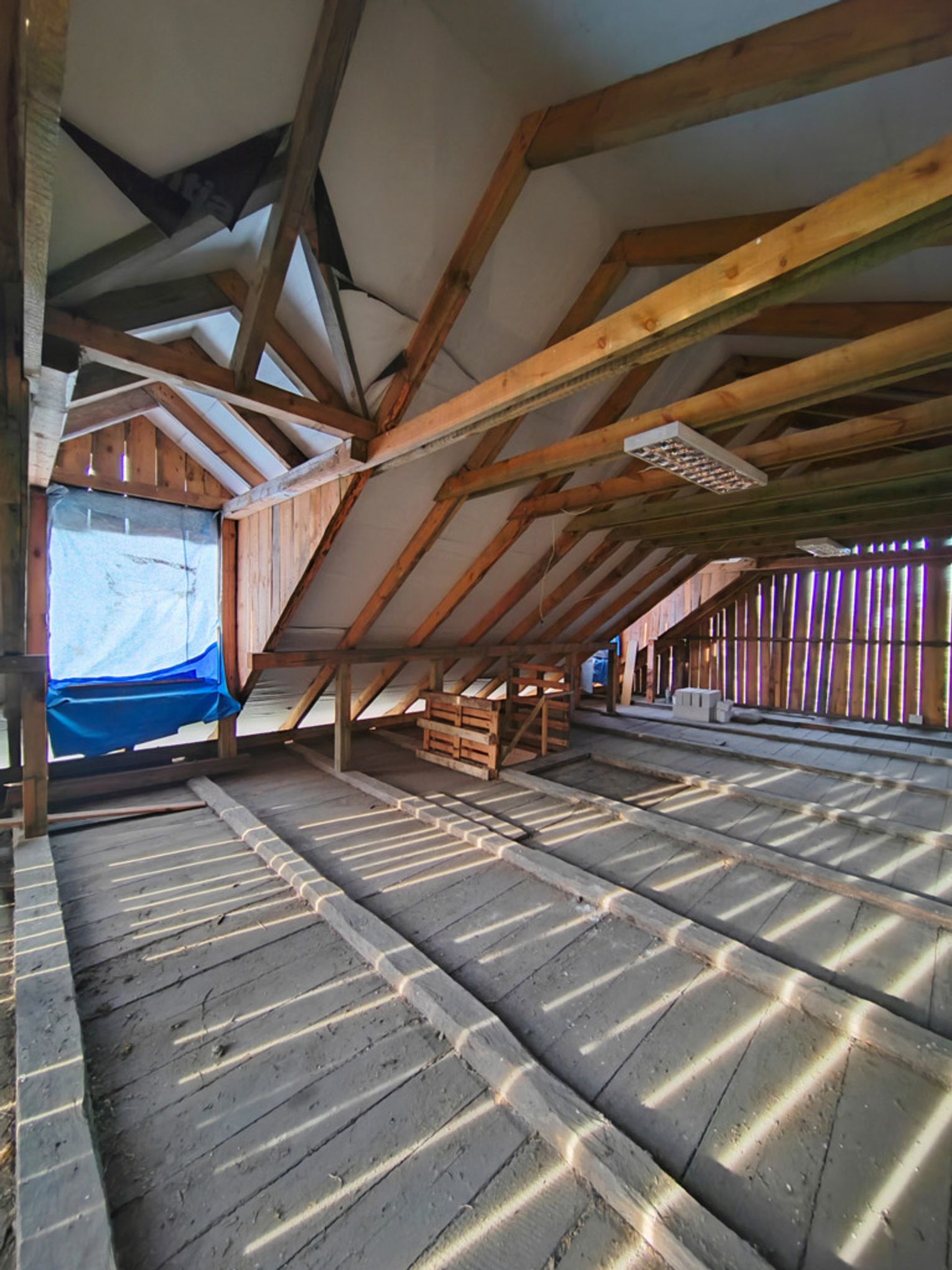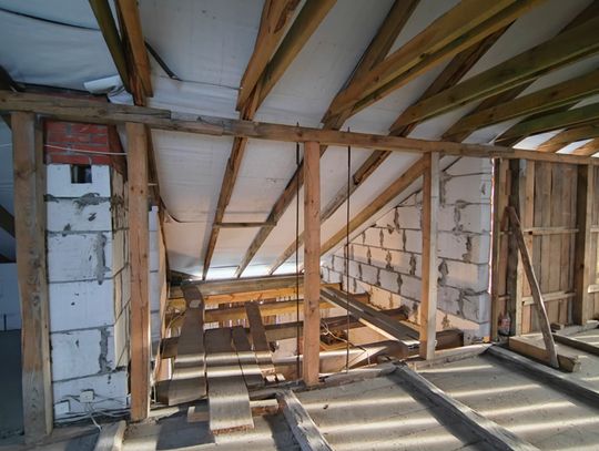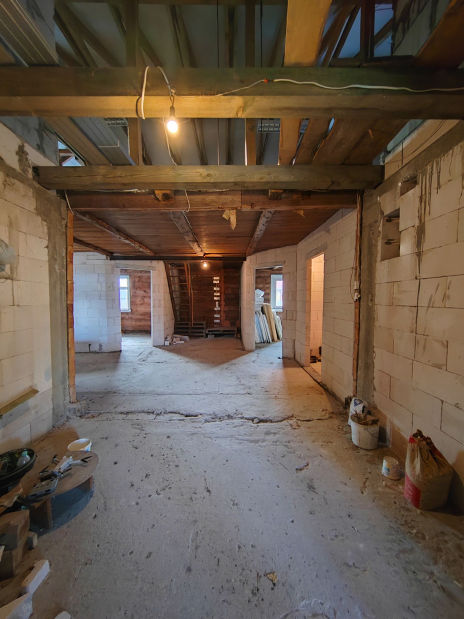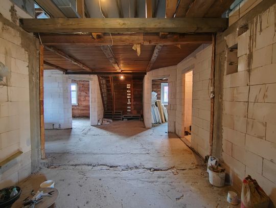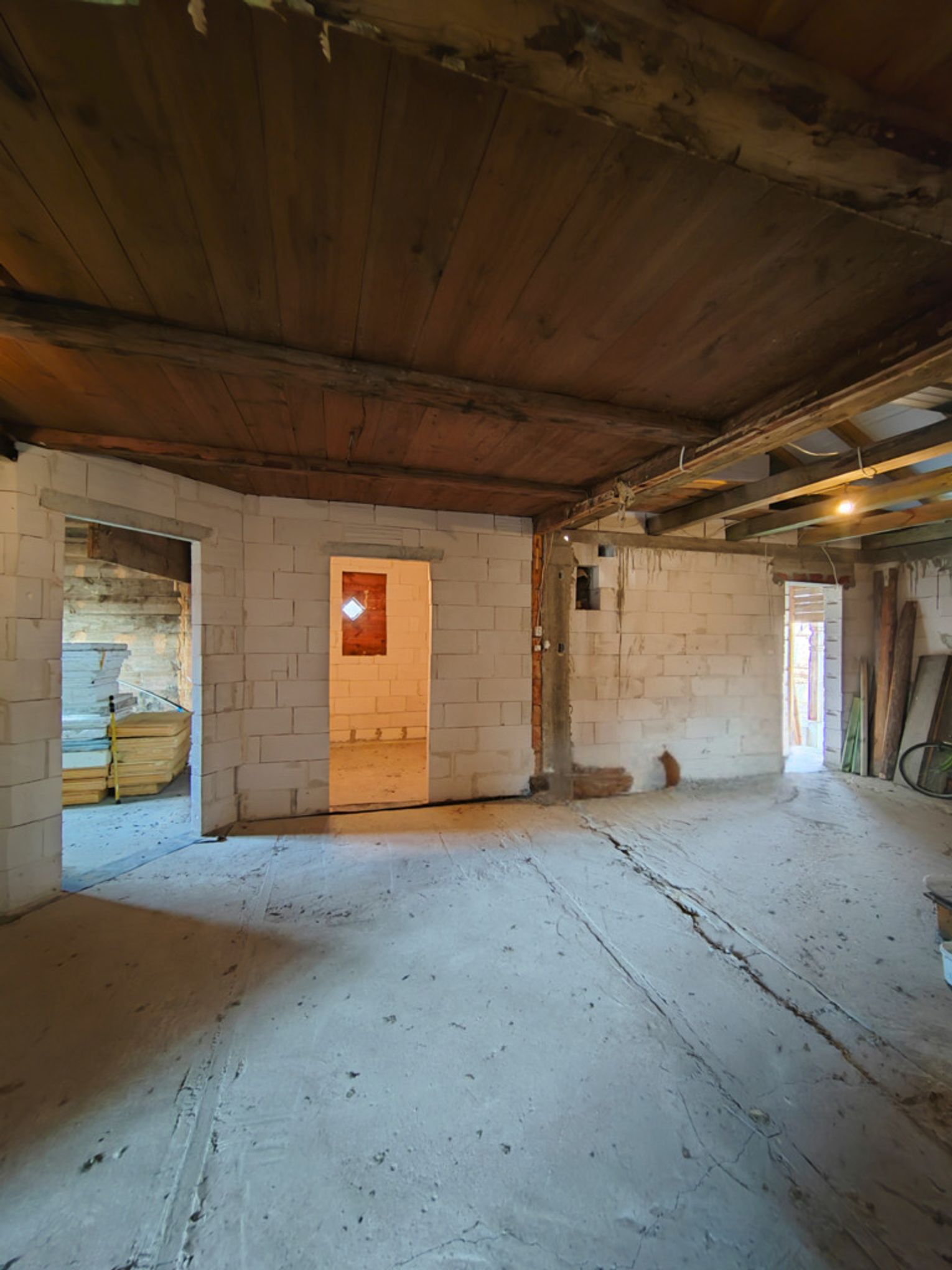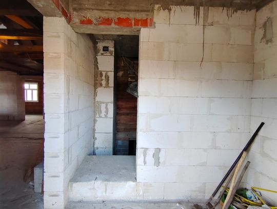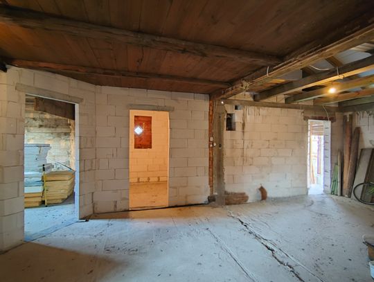 Dom jest w stanie surowym po rozbudowie z roku 2019, co daje możliwość stworzenia wymarzonego wnętrza według własnego gustu i potrzeb. Została stworzona nowa więźba i pokrycie dachu, dzięki czemu jest możliwość aranżacji poddasza.