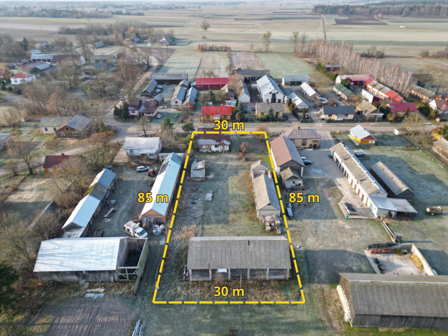 Nieruchomość tworzy działka nr 343 o powierzchni 2700 m² z domem oraz budynkami gospodarczymi. Według MPZP działka przeznaczona jest pod zabudowę mieszkaniową oraz tereny rolne (MR).