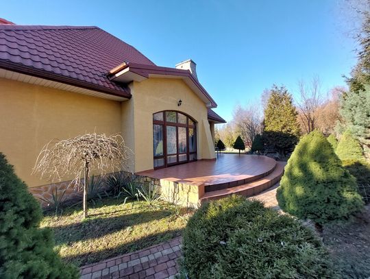 Duża, zadbana działka z licznymi nasadzeniami świetnie nadaje się na miejsce do relaksu czy do zabaw dla dzieci