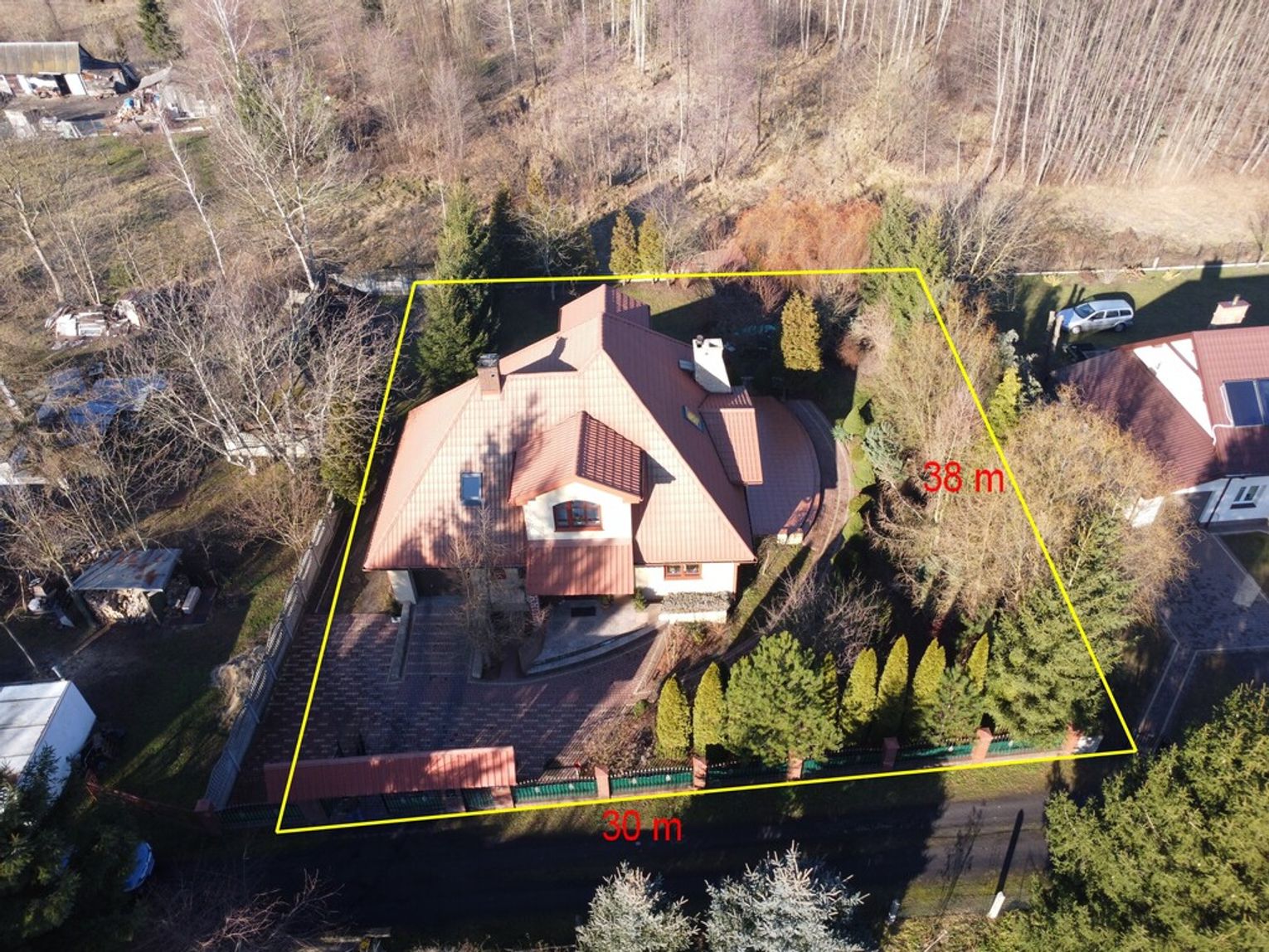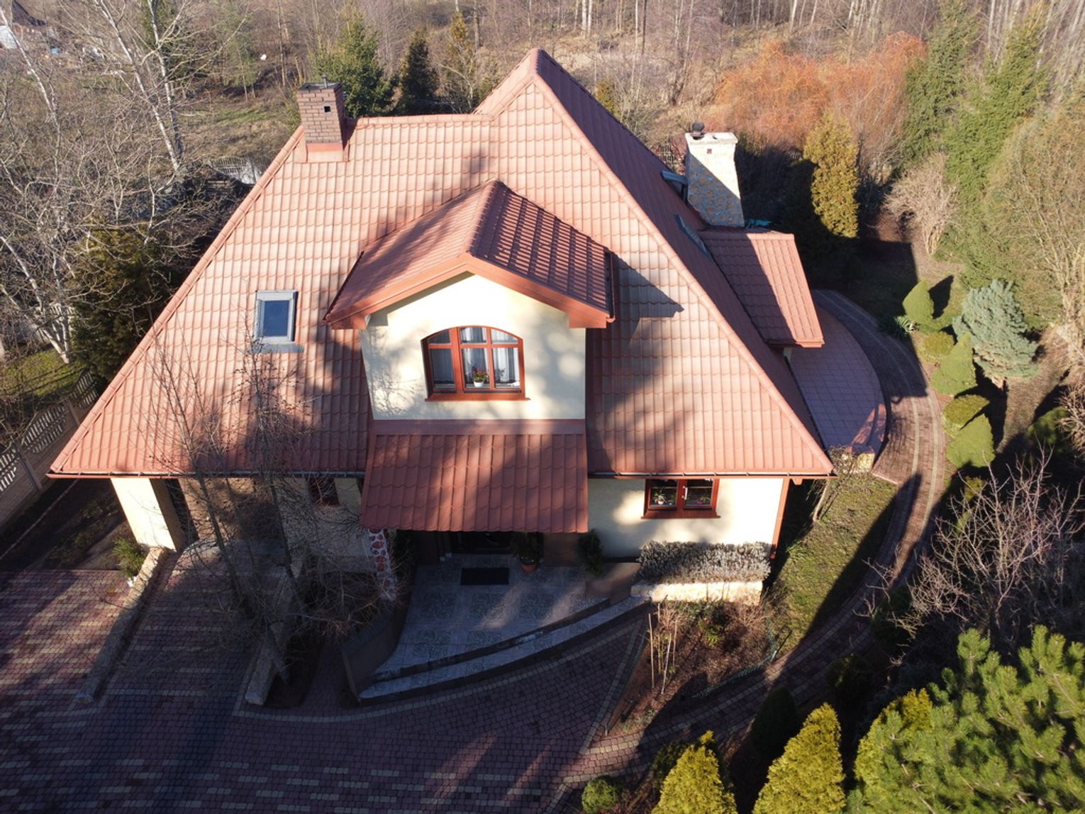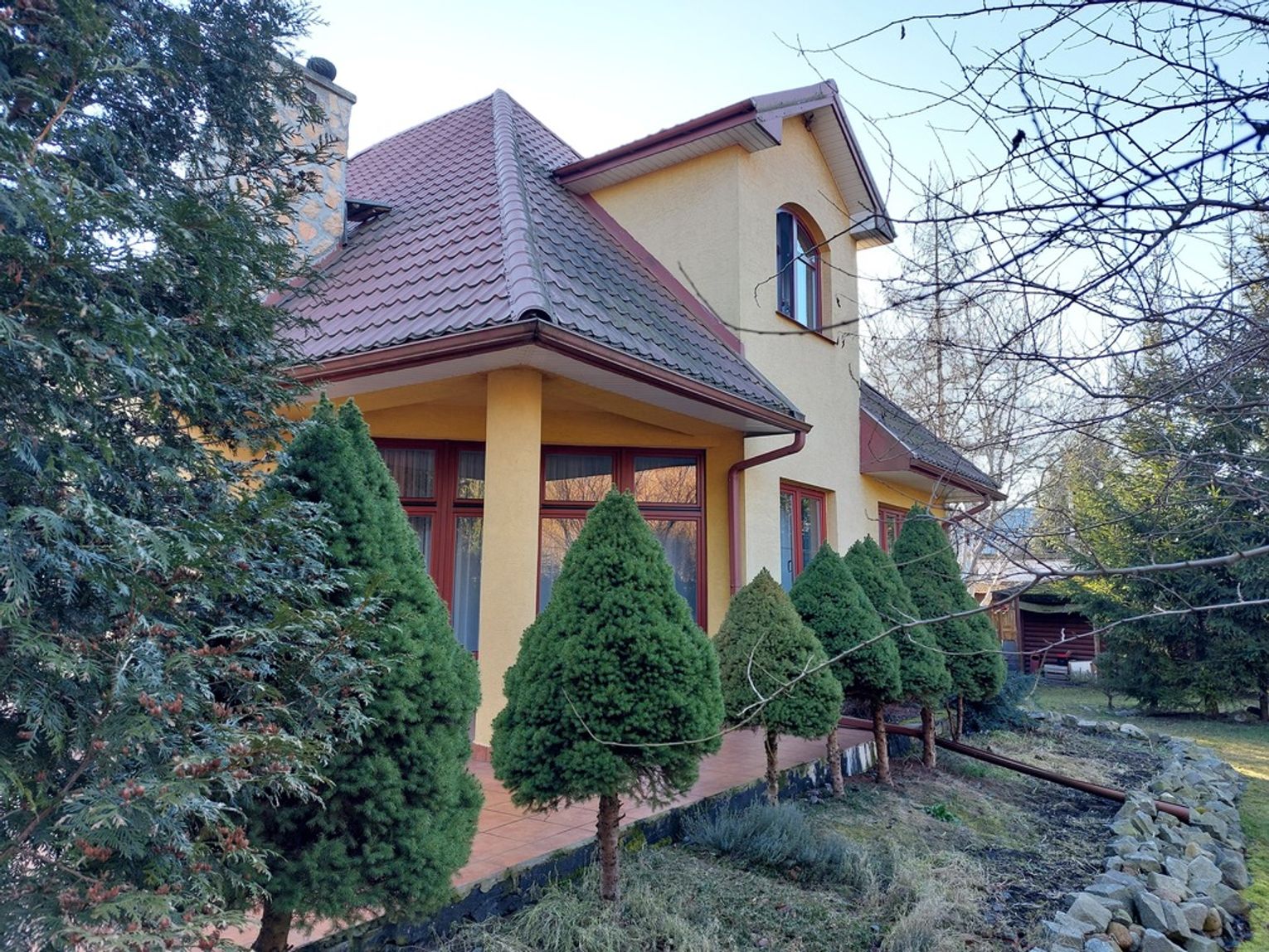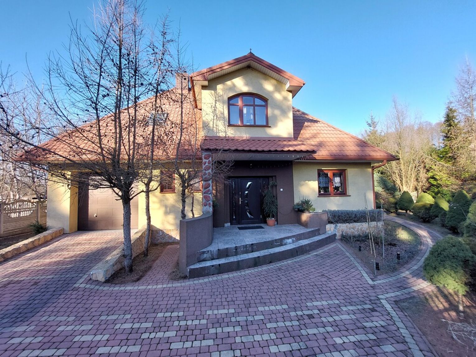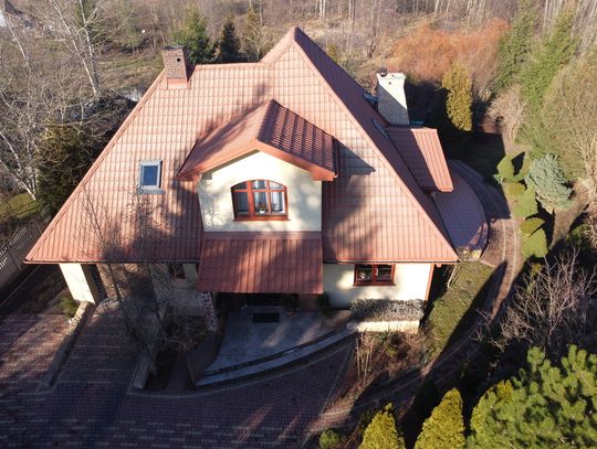 Okna drewniane (mahoniowe), drzwi wejściowe – antywłamaniowe, dom ocieplony