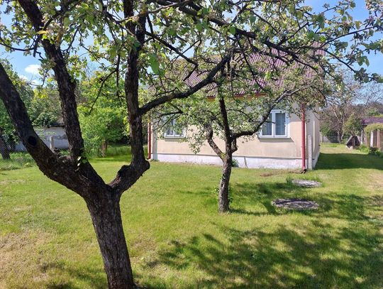 Duża działka z drzewami owocowymi świetnie nadaje się na miejsce do relaksu czy do zabaw dla dzieci